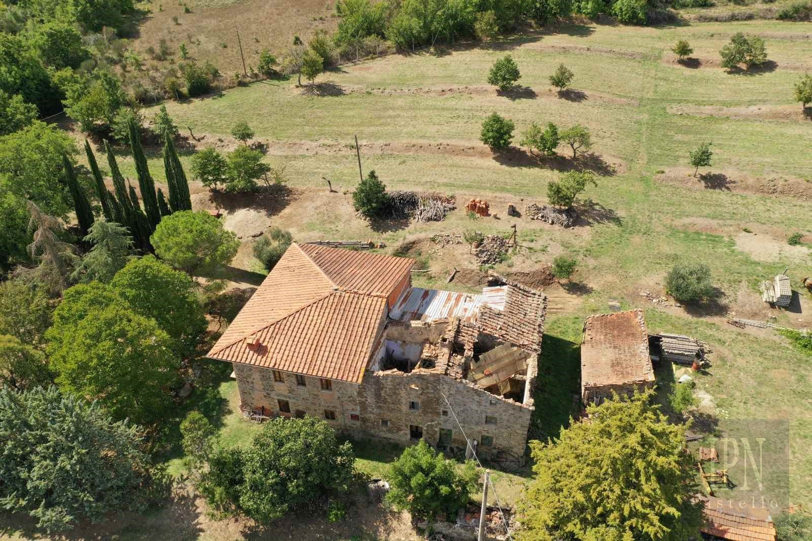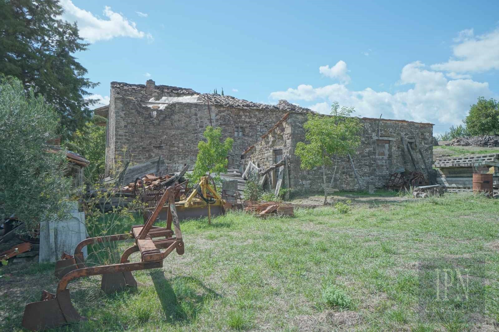 Not far from the panoramic road that connects the historical towns of Sansepolcro and the city of Arezzo, sits this very spacious ruin on a hill. The property is a typically rural construction made of original stone and brick, measuring over 500 square metres. The ruin consists of a main house of 470 square metres and a stable/agricultural shed of 50 square metres.