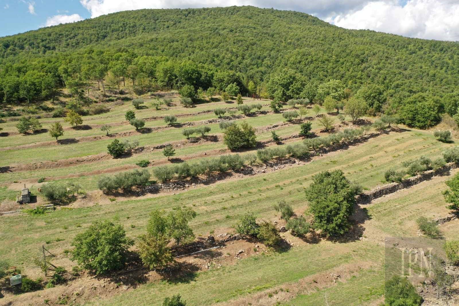 The whole is developed in two floors culminating in a final attic under the roof. The property includes 5 hectares of hilly terrain with cypress, olive and other types of trees.