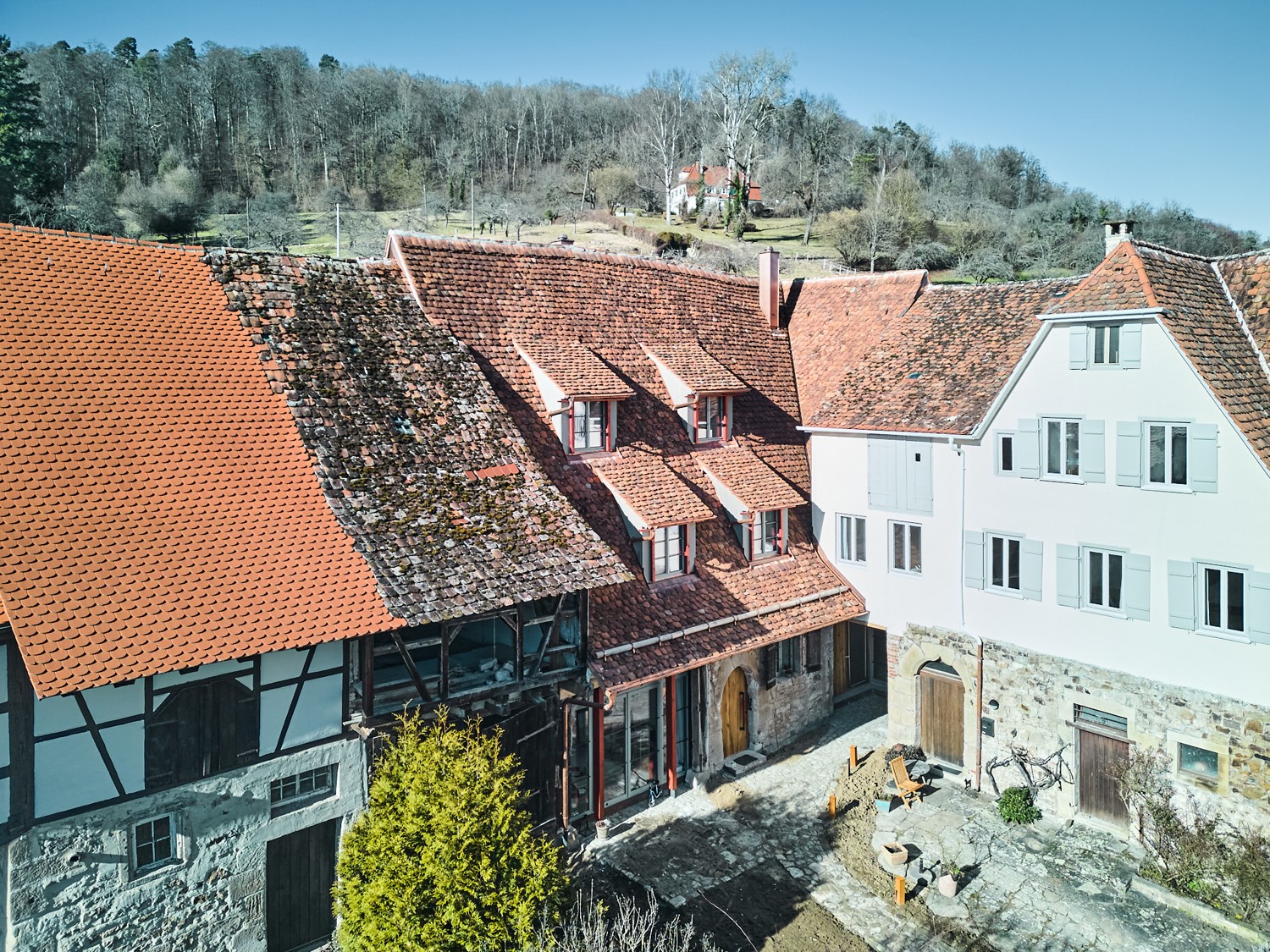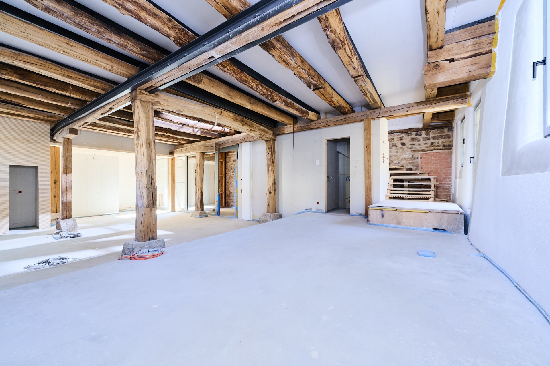 Die hochwertige Arbeit des einst reichen Klosters ist bis heute sichtbar. Das Tragwerk blieb weitgehend erhalten und wurde nur punktuell ertüchtigt, während die historische Bausubstanz denkmalsensibel ergänzt oder ersetzt wurde. Selbst die originalen Dachziegel wurden gereinigt und wiederverwendet. Der Umbau vereint Tradition und Moderne mit einem im Denkmalbereich exzellenten Energiestandard und bietet Platz für Ihre persönlichen Gestaltungsideen.