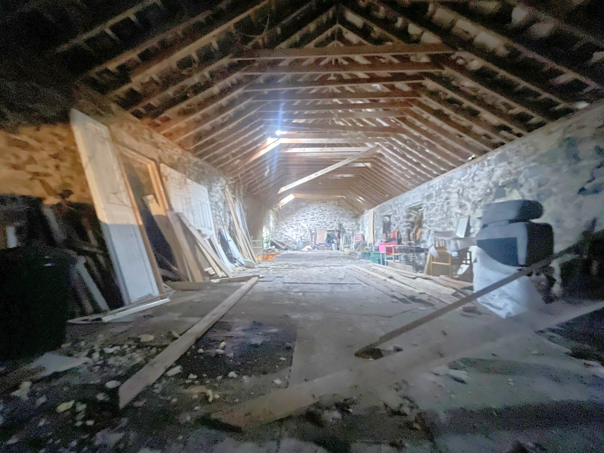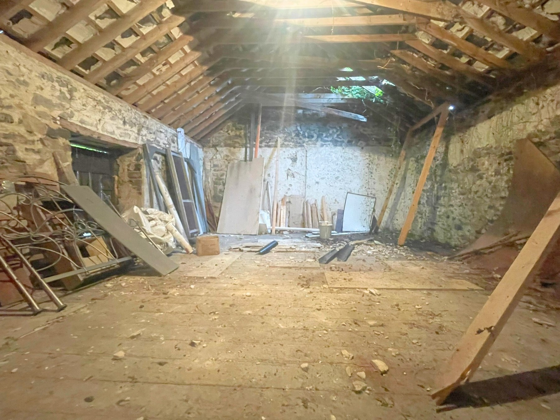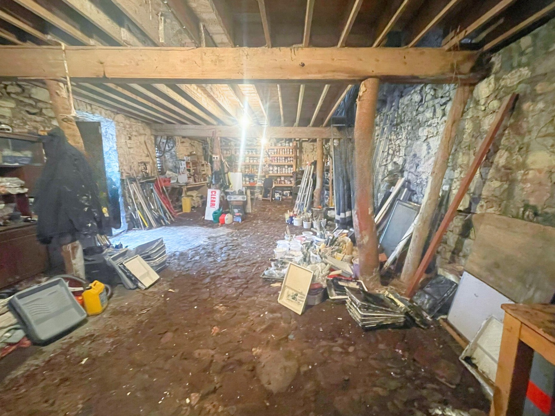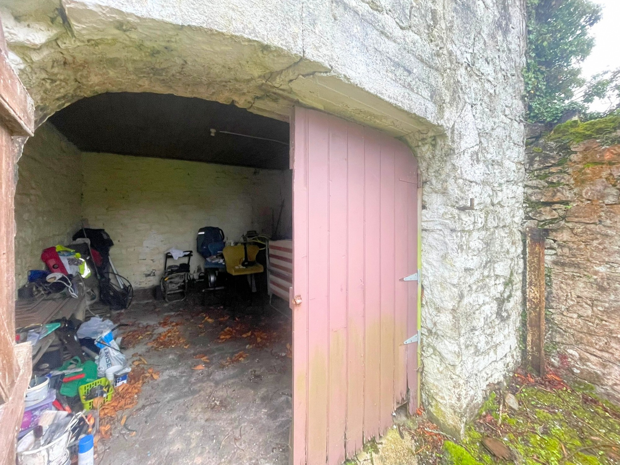 Mature trees, walled garden, and a traditional courtyard framed by slate-roofed stone buildings offering clear scope for conversion (subject to planning).