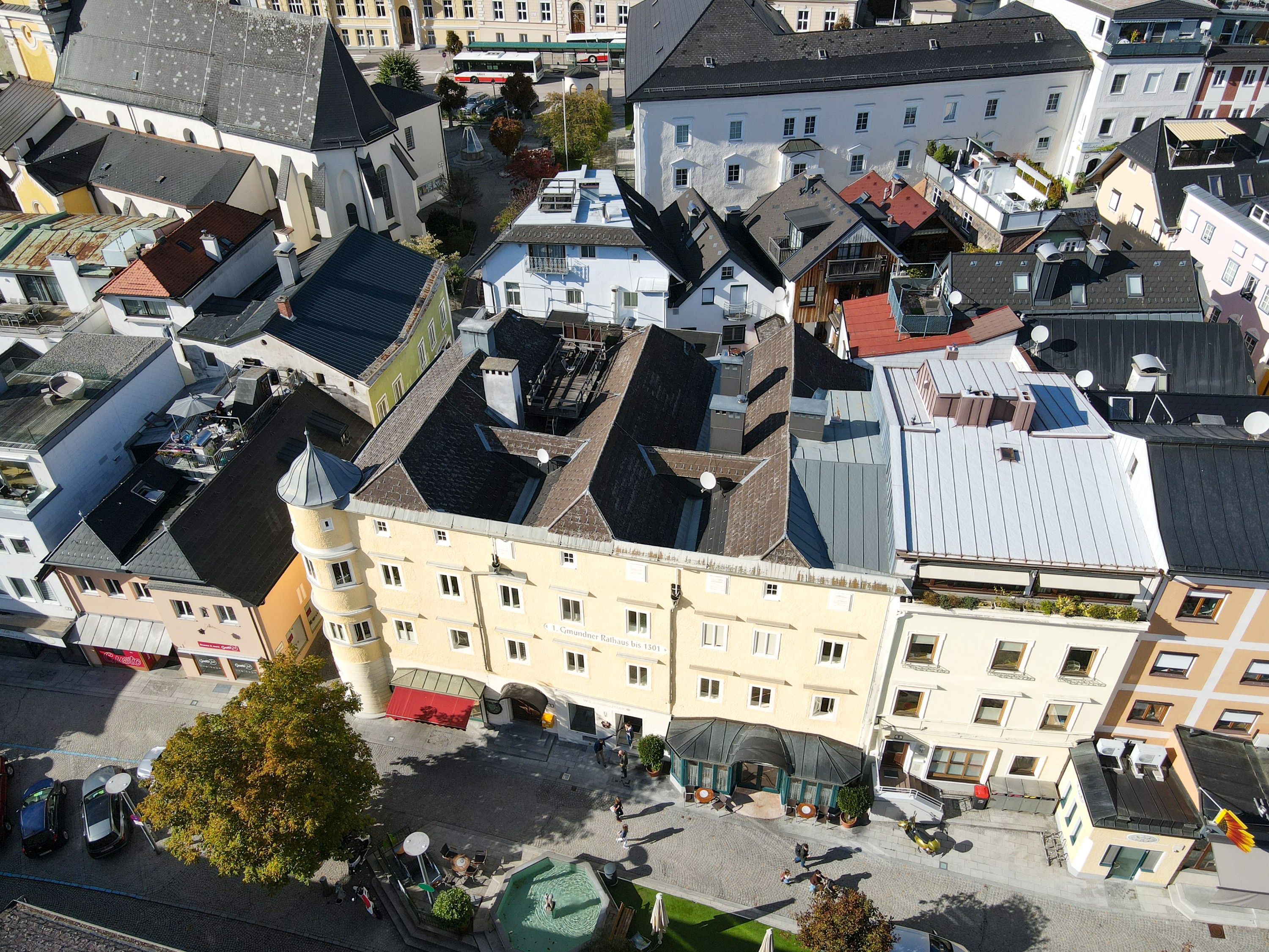 Historisches Rathaus am Marktplatz in Gmunden mit genehmigtem Dachgeschossausbau