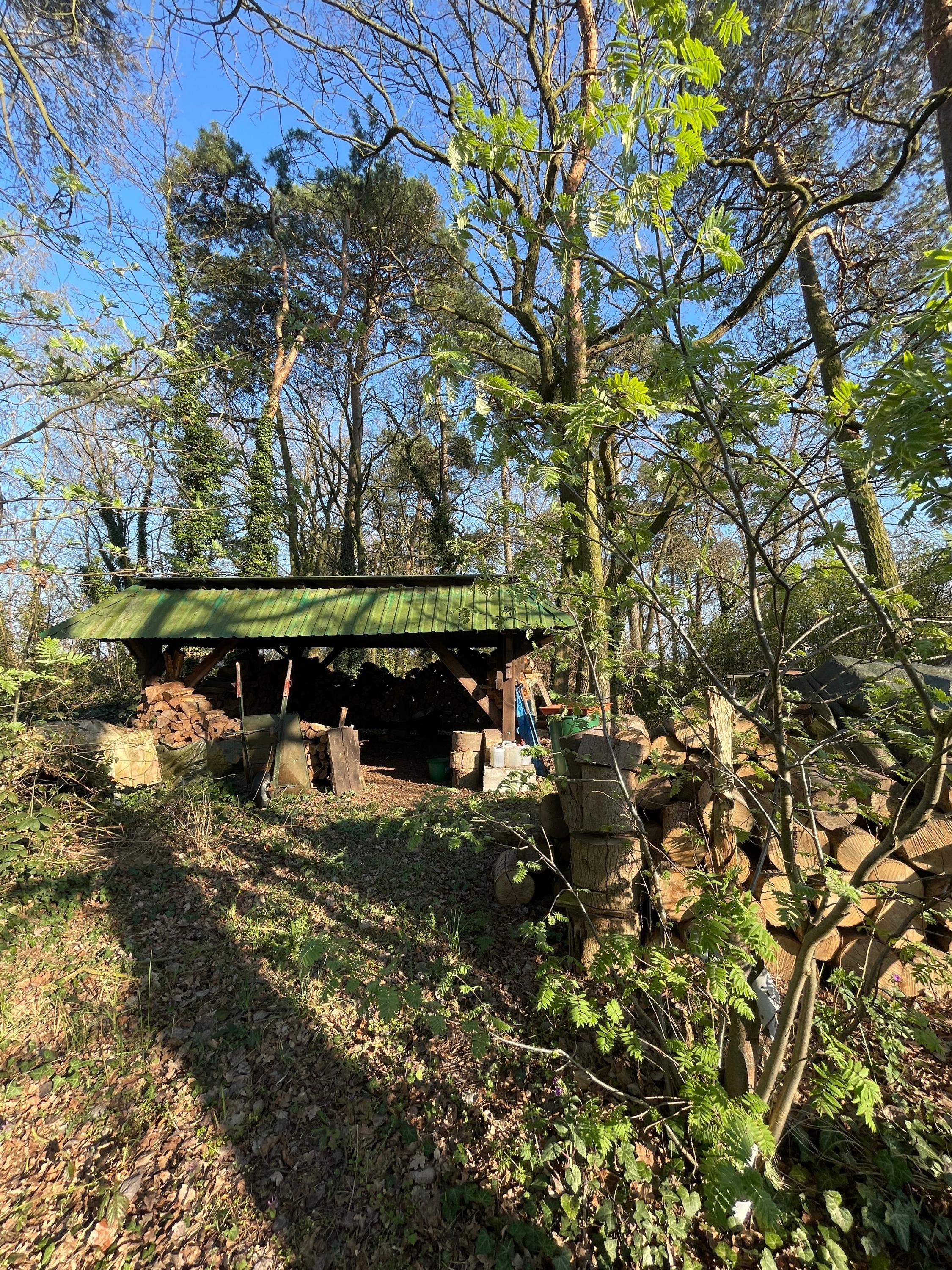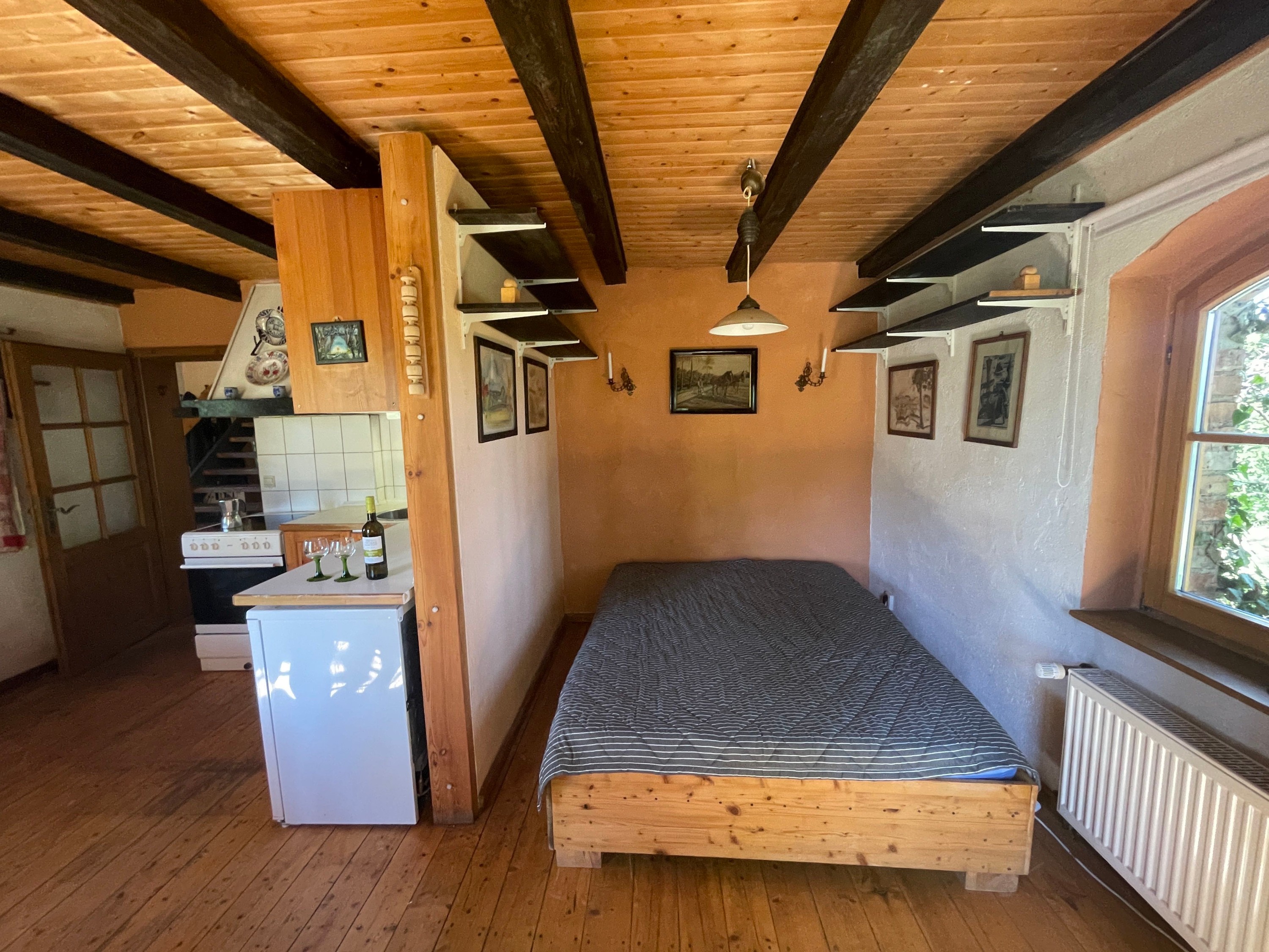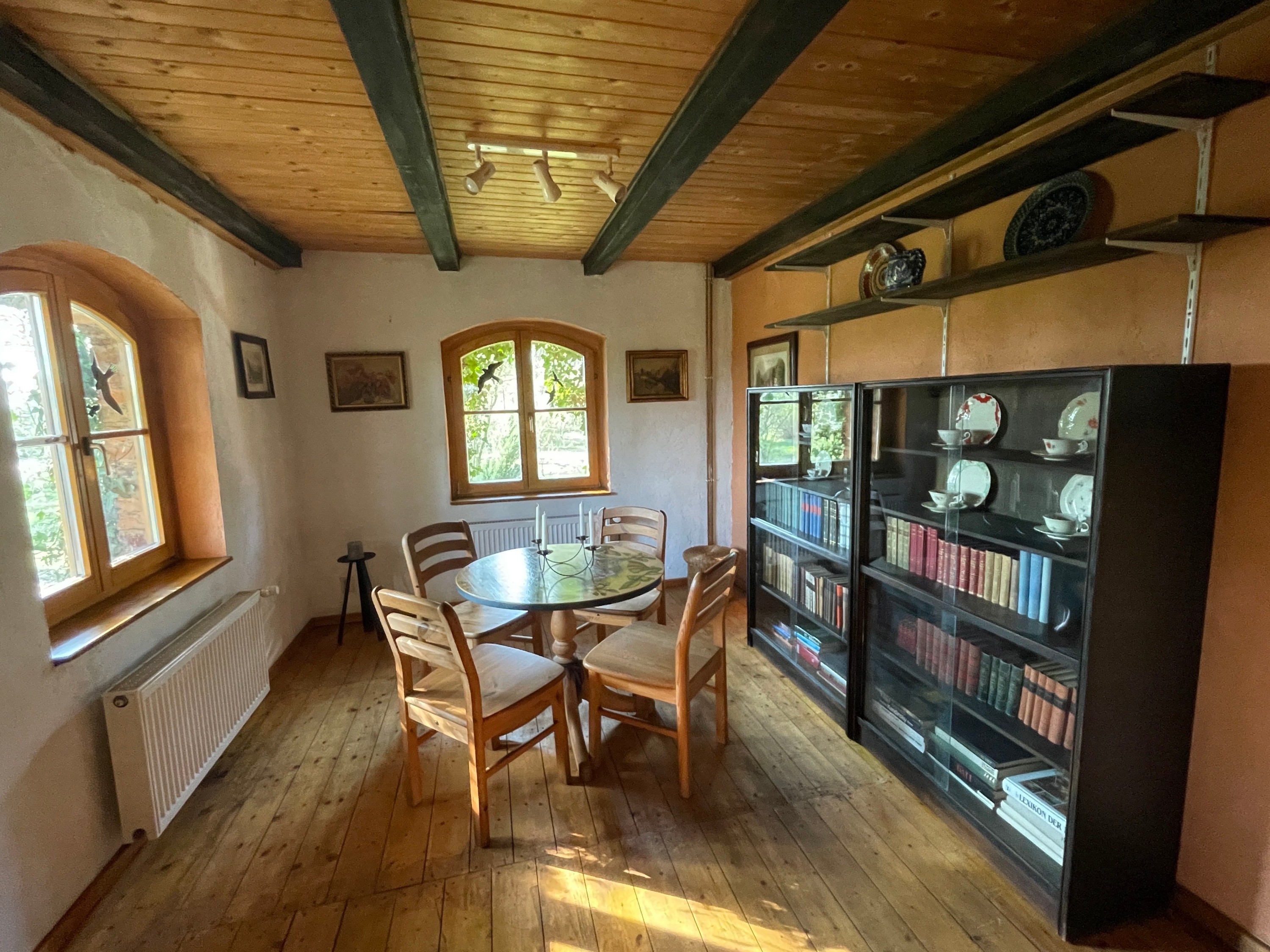 Na velkém pozemku stojí pevný přístřešek na skladování dřeva a tradiční zemní sklep. Louka s divoce rostoucím ovocným sadem a vzrostlými stromy doplňuje celé sídlo.