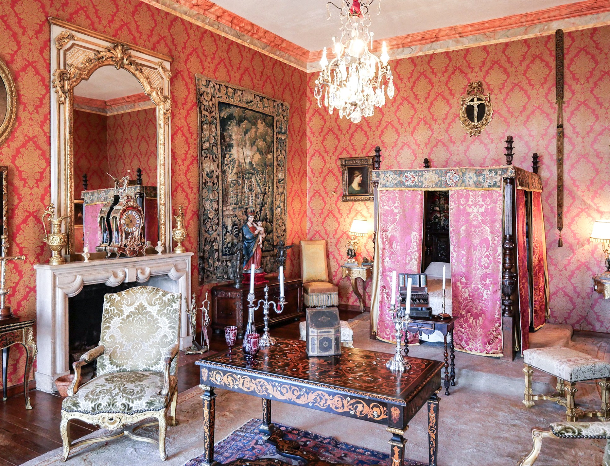 První patro nabízí mimořádnou galerii dlouhou 45 metrů podél haly se sloupy, osm ložnic s předsíňkami a kabinetem, biliardovou knihovnu s 19. stoletím tapetami, kapli a půdu. Sklepy zahrnují prostorné klenuté vinné sklepy a tunel. Část château je vybavena centrálním vytápěním.