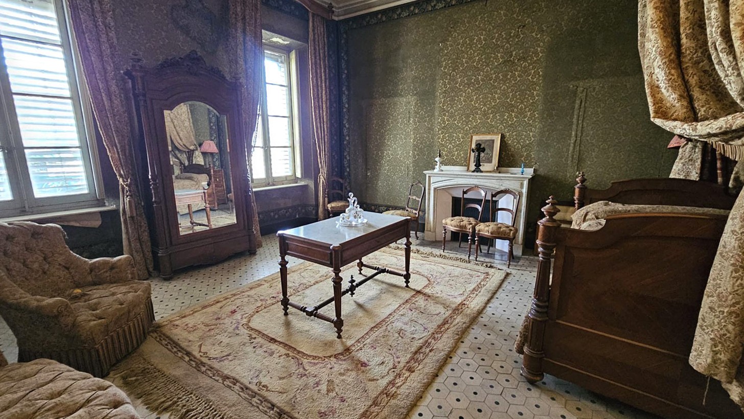 V přízemí: prostorná hala, dva salony, jídelna s parketovou podlahou, pracovna, kuchyň a komora. Reprezentativní schodiště vede do patra se šesti ložnicemi, třemi koupelnami a prostorným podkrovím.