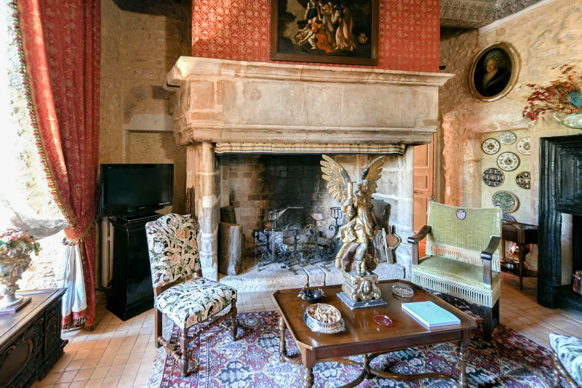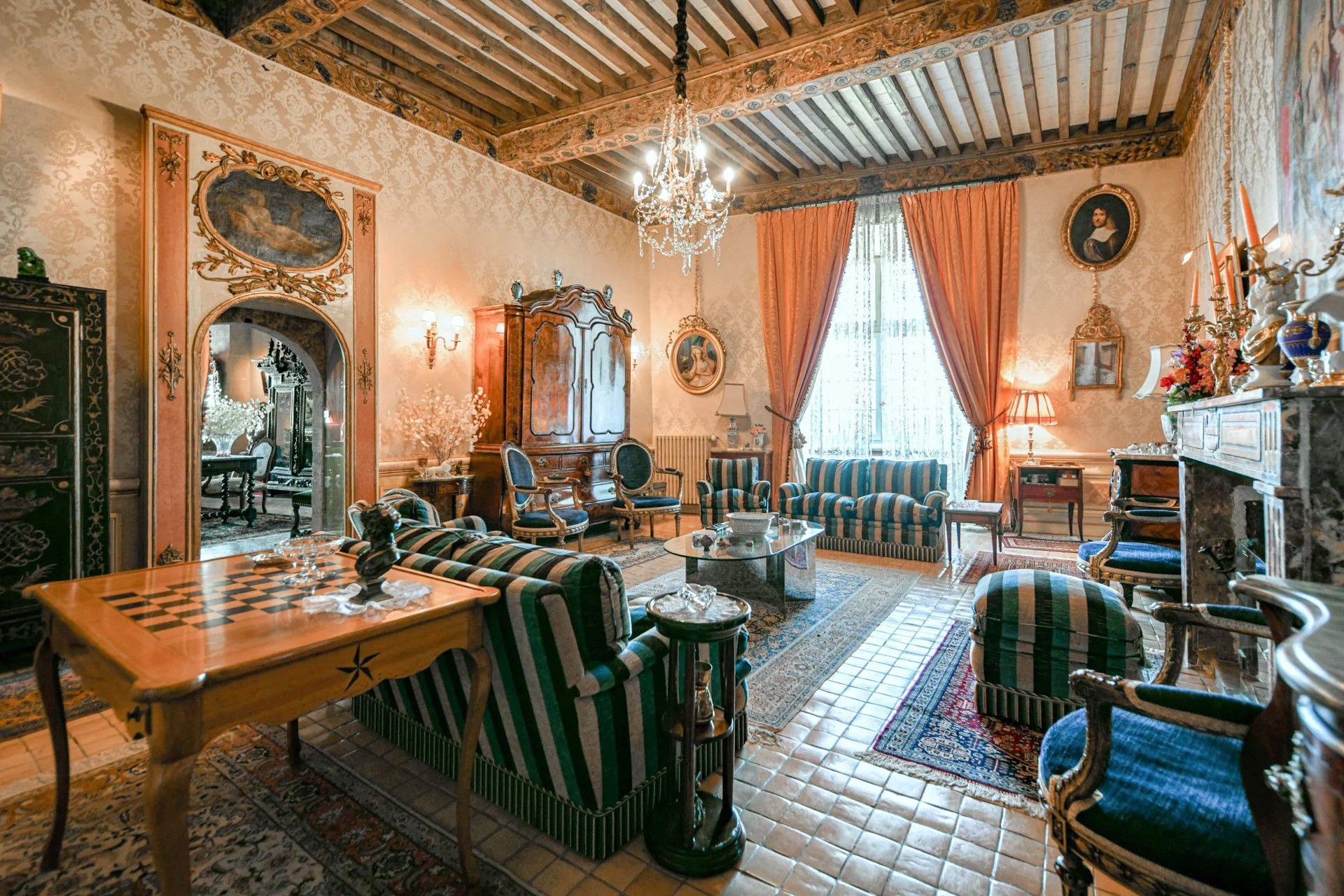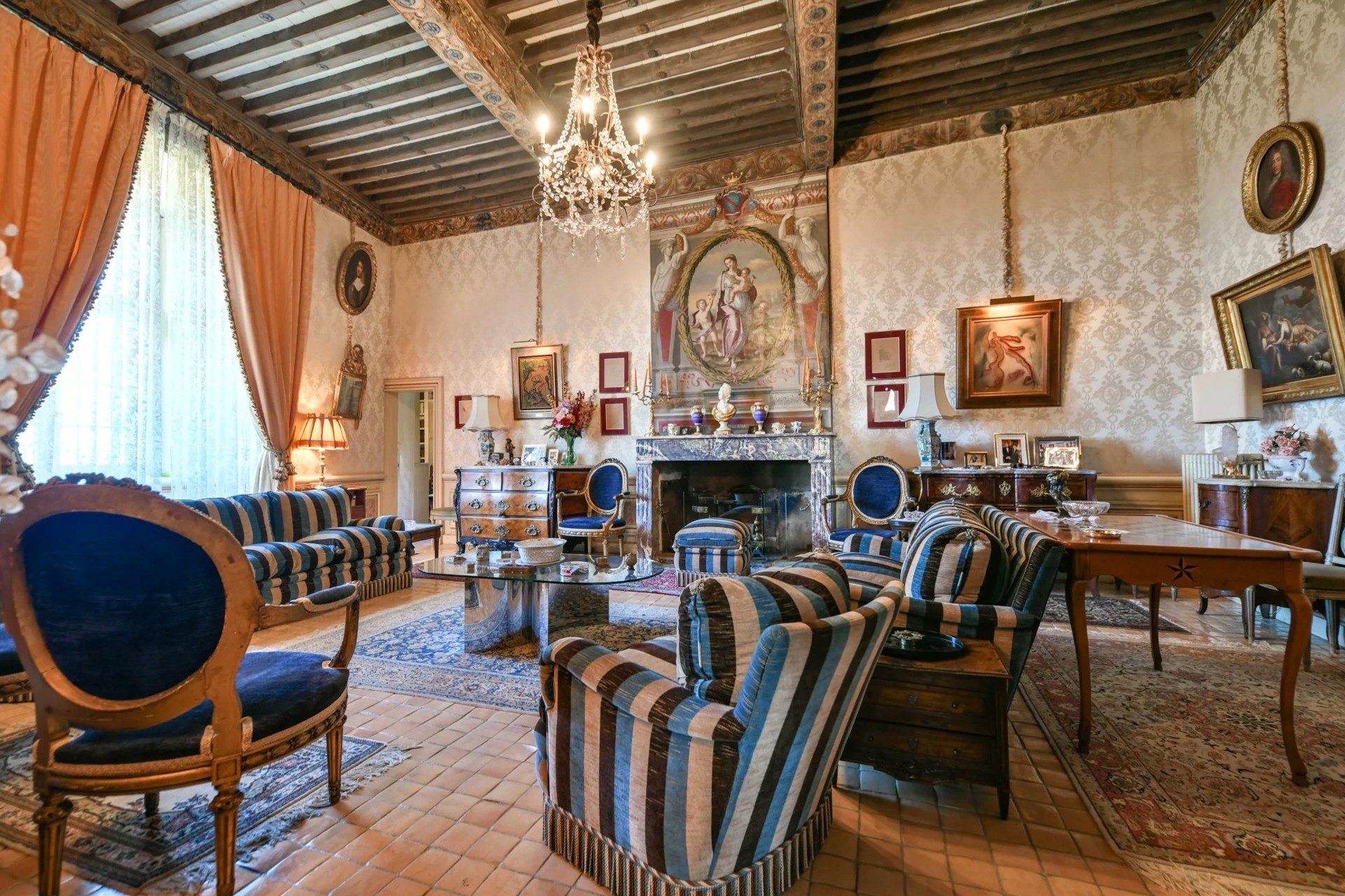 Hlavní budova se rozkládá na třech patrech. V přízemí přivítá prostorný klenutý salón s originálním stropem ze 17. století. Nádherné schodiště vede do prvního patra, kde se harmonicky propojují reprezentační místnosti: dva salony s vysokými okny, jídelna s krbem a knihovna. Z dlouhé chodby se vstupuje do hlavní suite o rozloze 100 m² s výhledem do parku.
