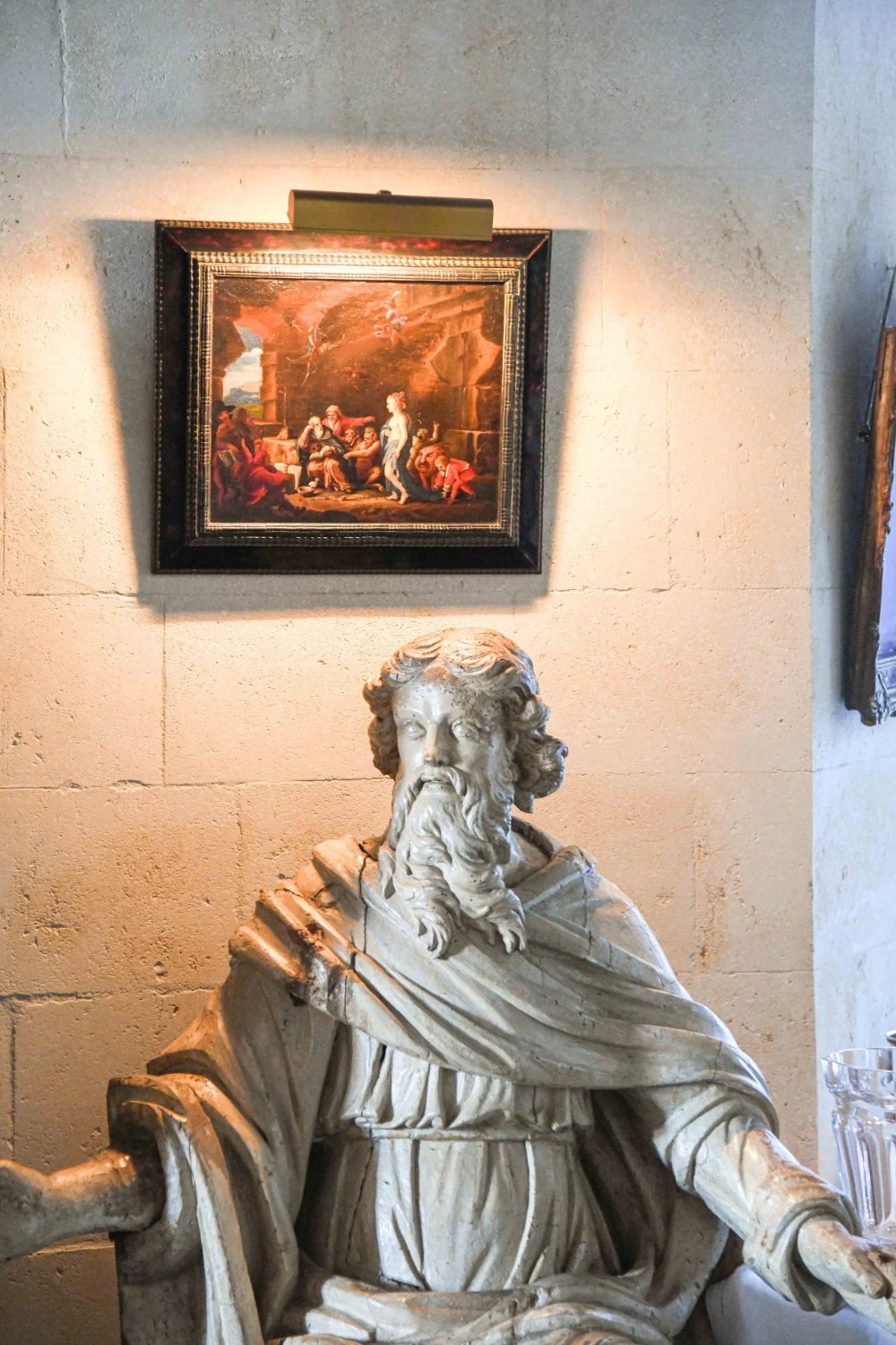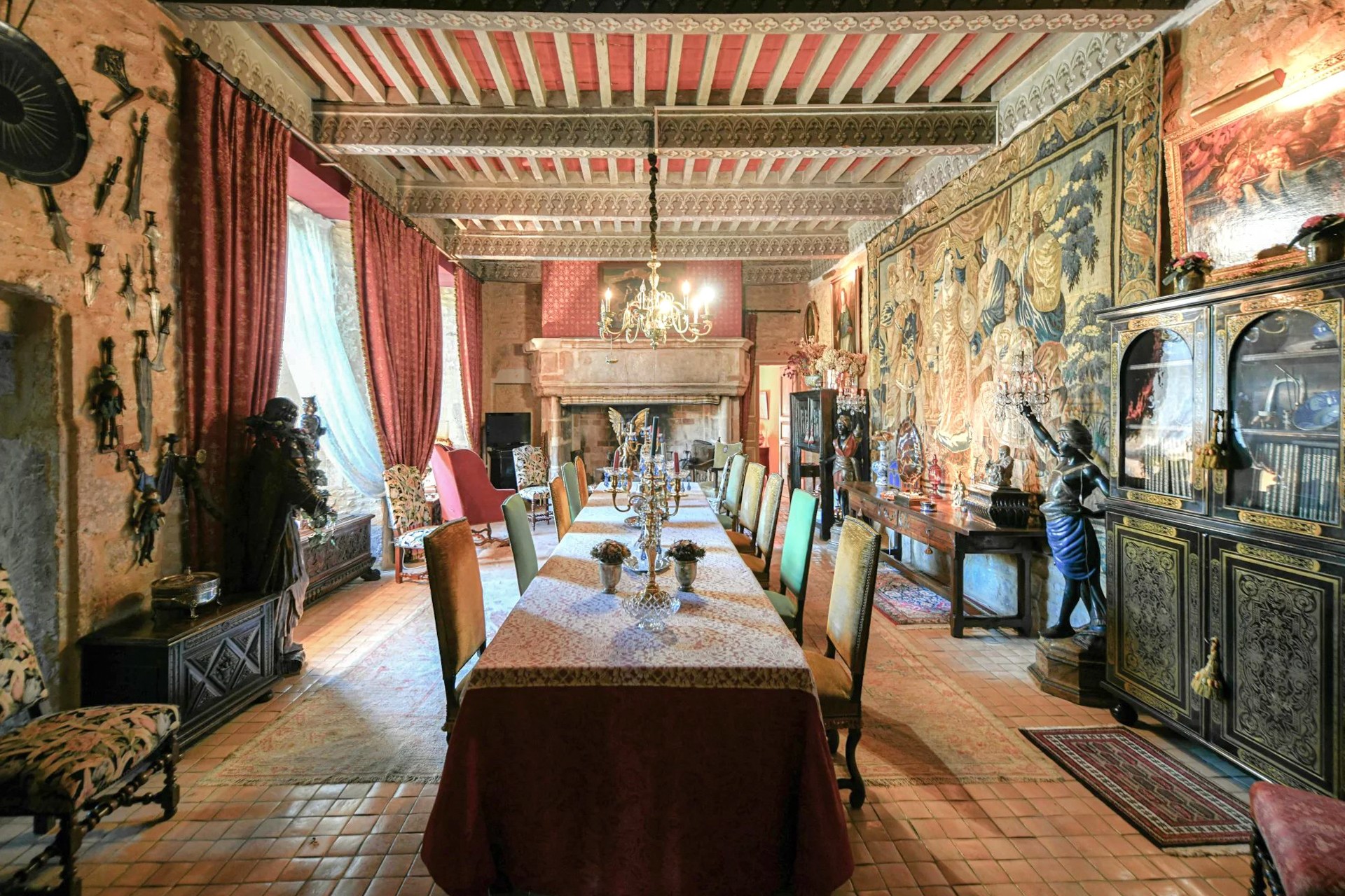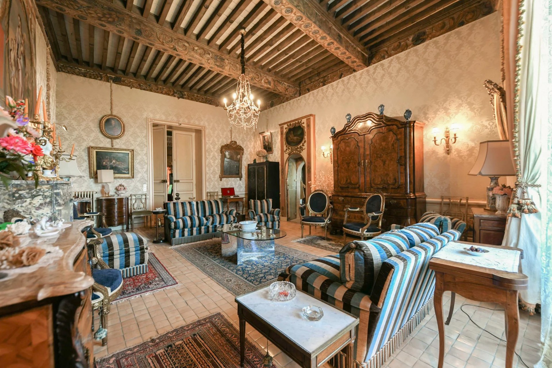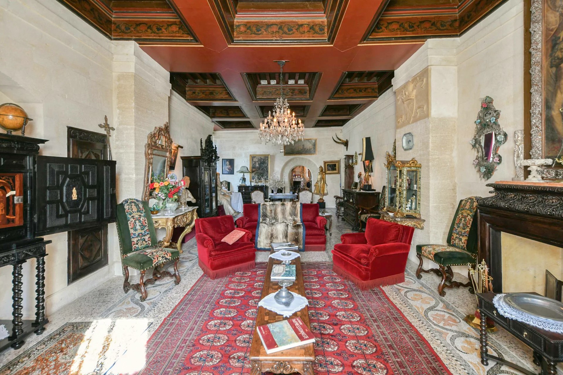 Hlavní budova se rozkládá na třech patrech. V přízemí přivítá prostorný klenutý salón s originálním stropem ze 17. století. Nádherné schodiště vede do prvního patra, kde se harmonicky propojují reprezentační místnosti: dva salony s vysokými okny, jídelna s krbem a knihovna. Z dlouhé chodby se vstupuje do hlavní suite o rozloze 100 m² s výhledem do parku.