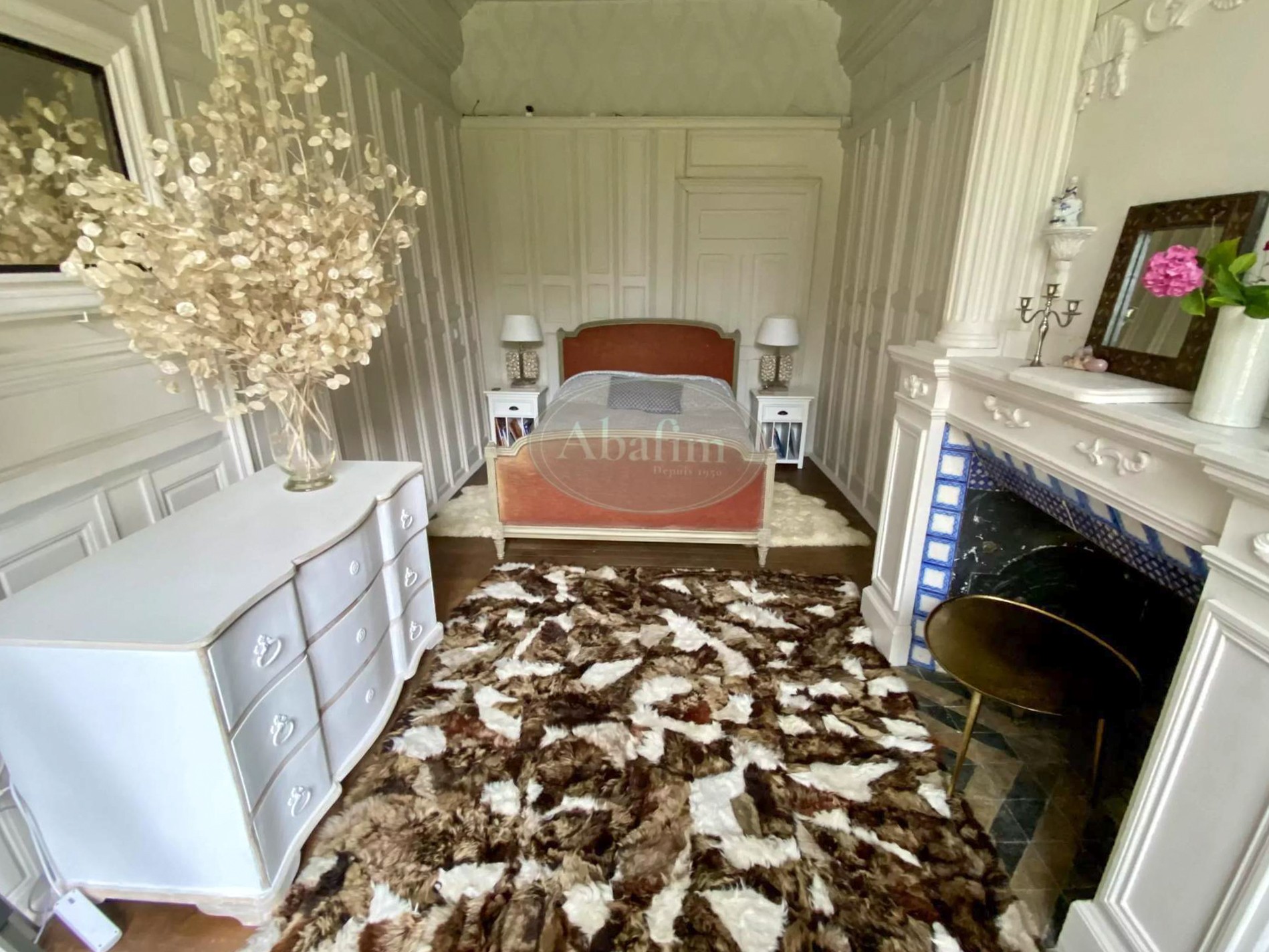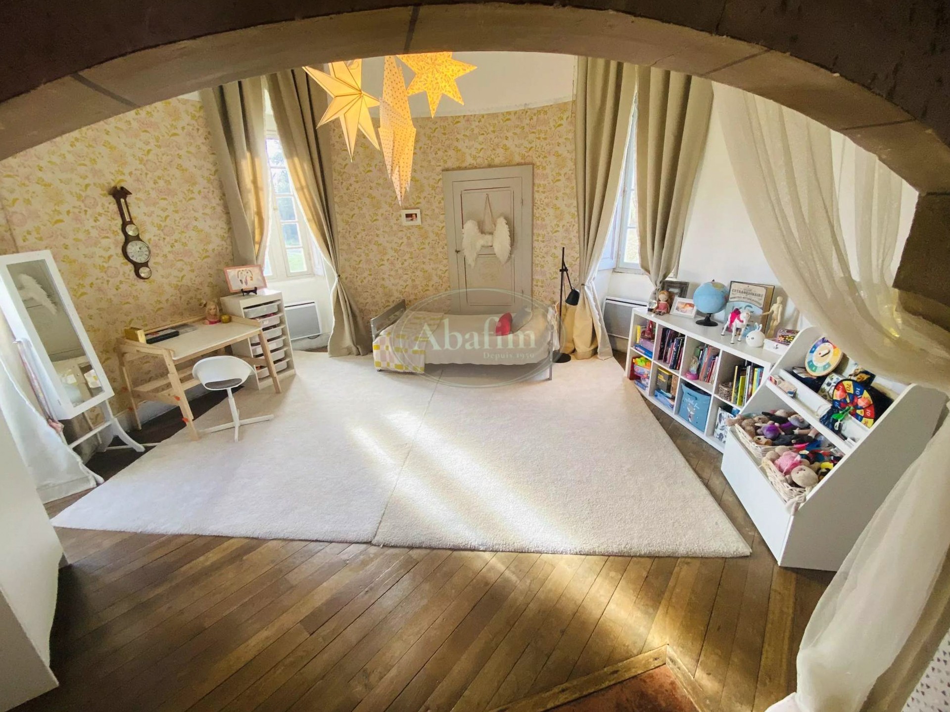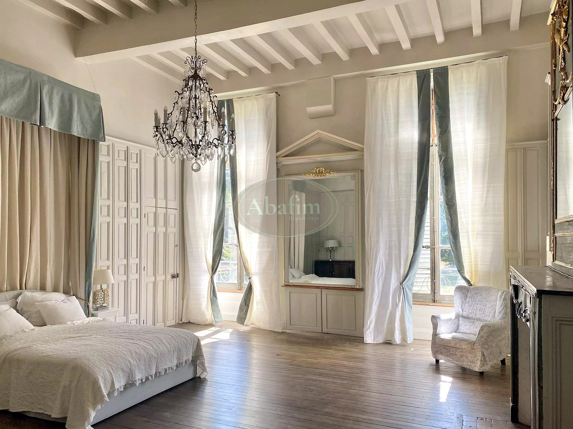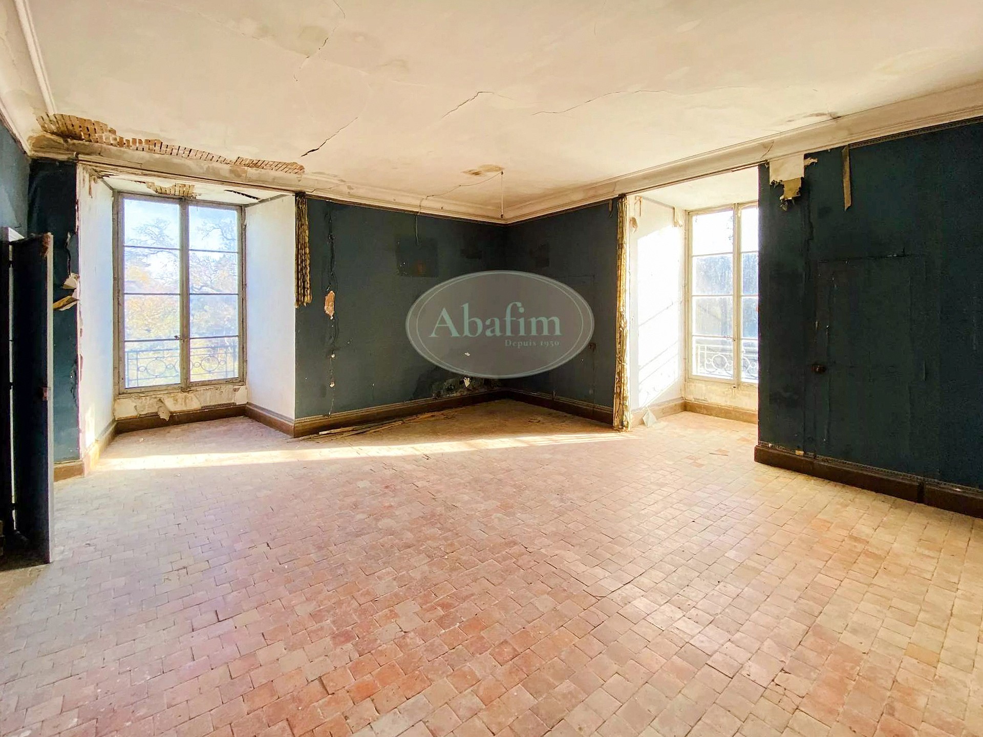 Hlavní budova nabízí více než 2.000 m² užitné plochy. Centrální vstupní hala s terakotovou podlahou a dřevěnými obklady vede do reprezentativních místností. Dva sály o rozloze přibližně 90 m² každý tvoří přízemí: první s monumentálním krbem, dubovou parketou a kazetovým stropem; druhý s vyřezávanými sloupy, dřevěnými obklady a tapisériemi zakládajících rodin. Druhý sál se otevírá do parku impozantním venkovním schodištěm. Stropy přes 5 metrů a četná okna zajišťují světlé a vzdušné prostory. Salon kompletně obložený dřevem o ploše 45 m² uzavírá enfiládu.
