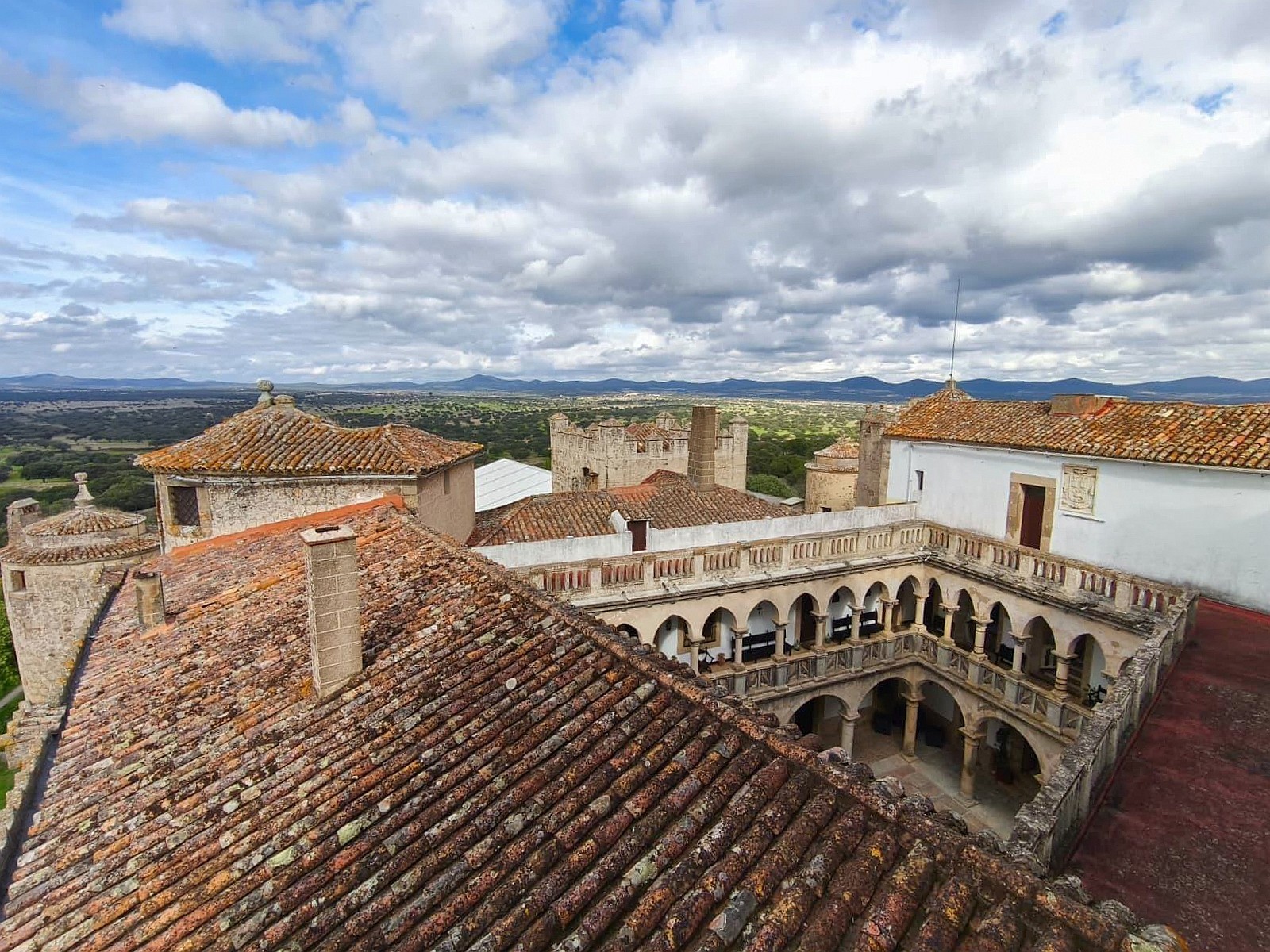 Castillo de Piedrabuena je srdcem 416 hektarového panství s několik století starými korkovými a dubovými stromy v Extremaduře. Středověký komplex je dobře udržovaný a prochází kontinuálními restaurátorskými pracemi.