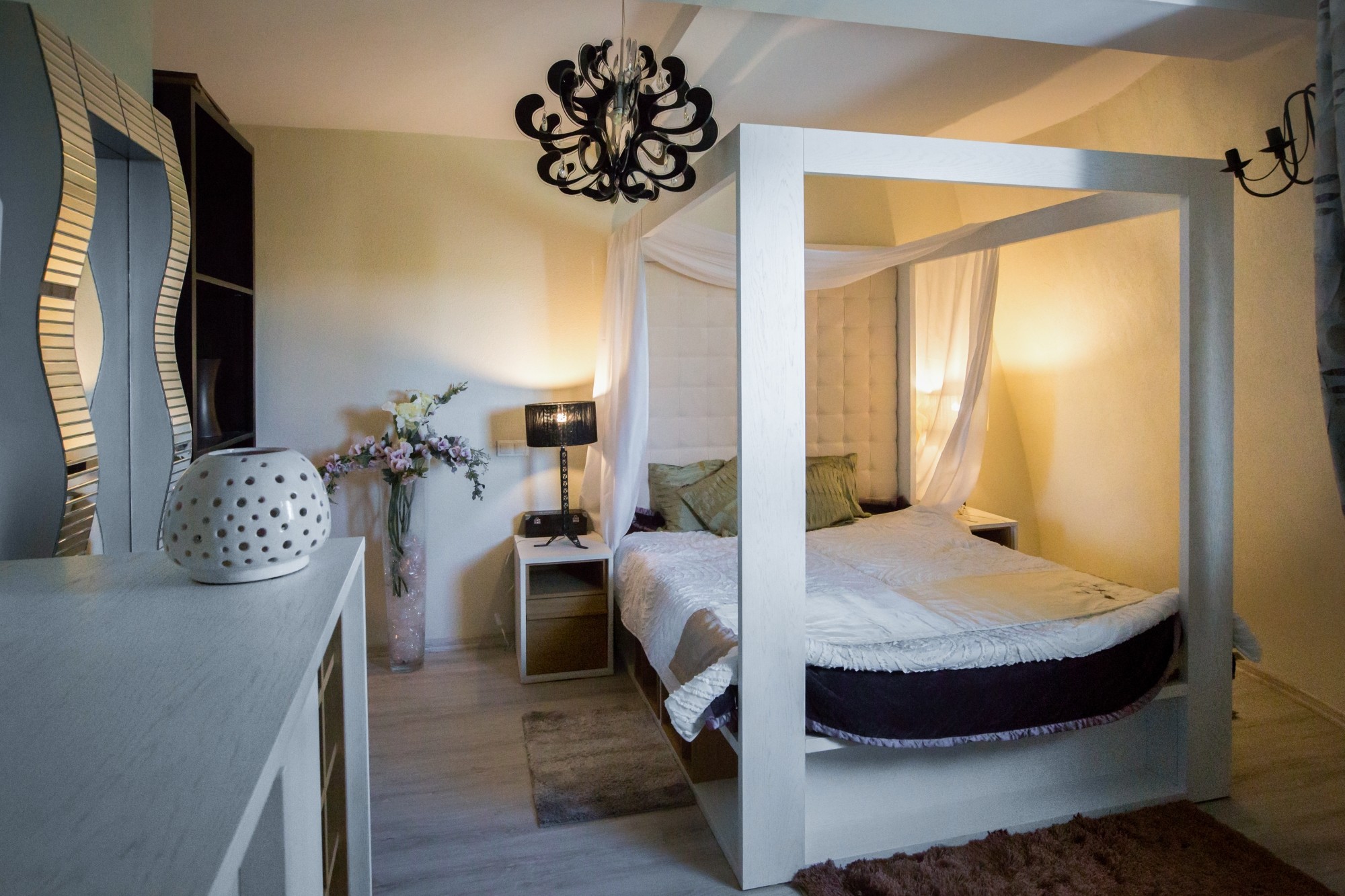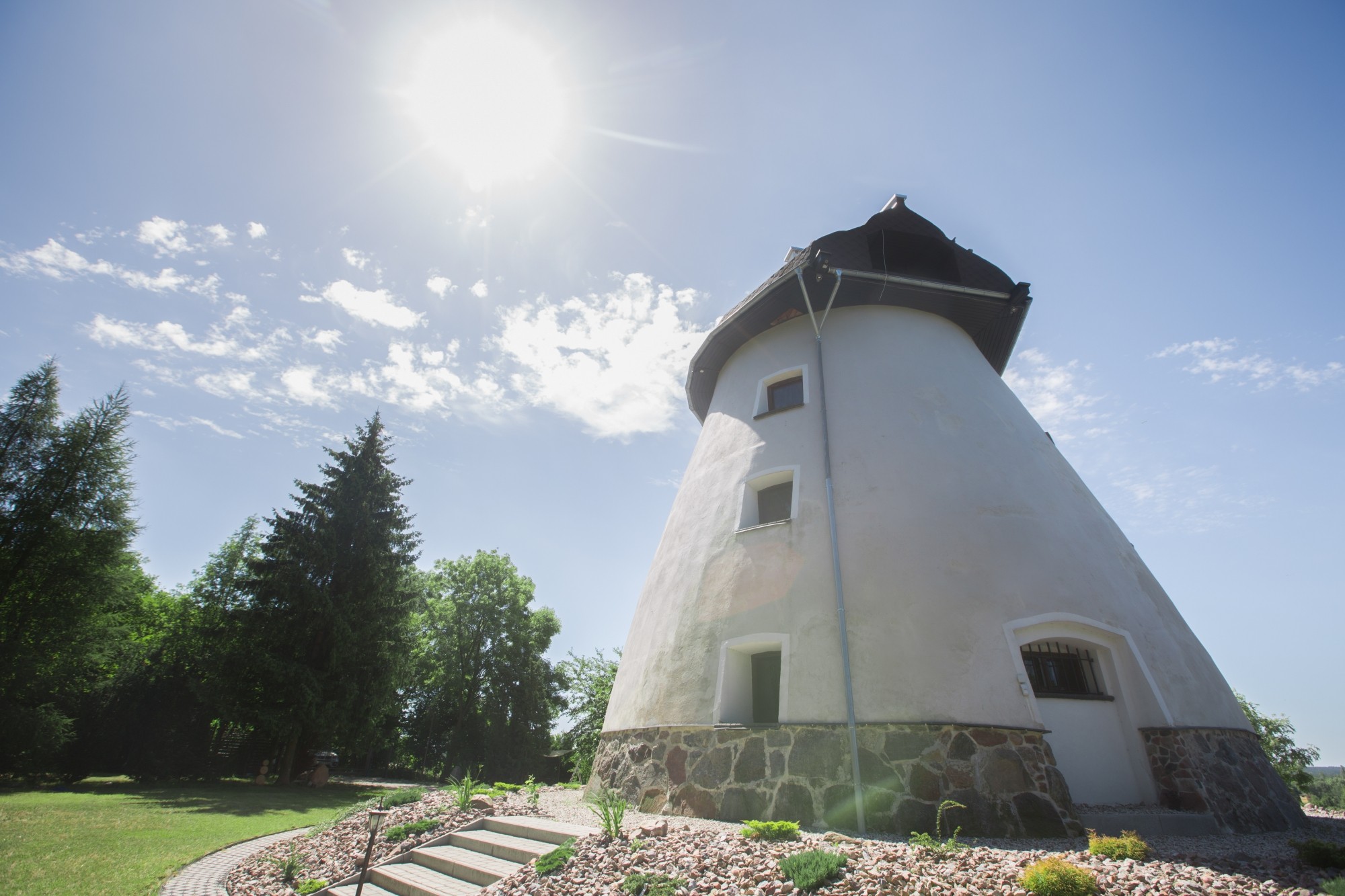 • Čtvrté patro (kupole): Ložnice s koupelnou a výhledem na malebné okolí a jezero Ryńské.