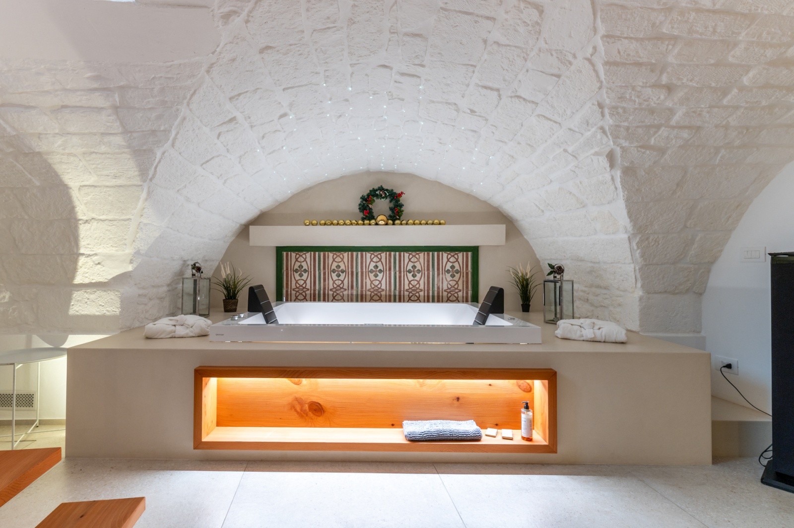 V samém srdci historického centra Ostuni, v regionu Apulie, se nachází tento pečlivě zrekonstruovaný městský dům, rozložený do několika pater s jasnou a flexibilní strukturou. Až tři samostatné vstupy umožňují využití nemovitosti buď jako jediné prostorné rezidence, nebo jako několik nezávislých jednotek, což ji činí vhodnou jak pro vlastní bydlení, tak pro strukturovaný krátkodobý pronájem. Součástí je wellness zóna s vířivkou a několik využitelných teras s výhledem na střechy historického centra až k moři v dálce.