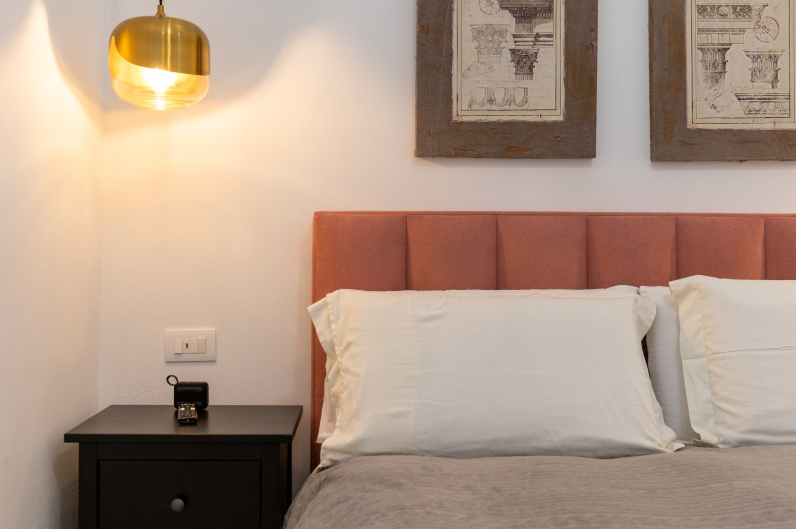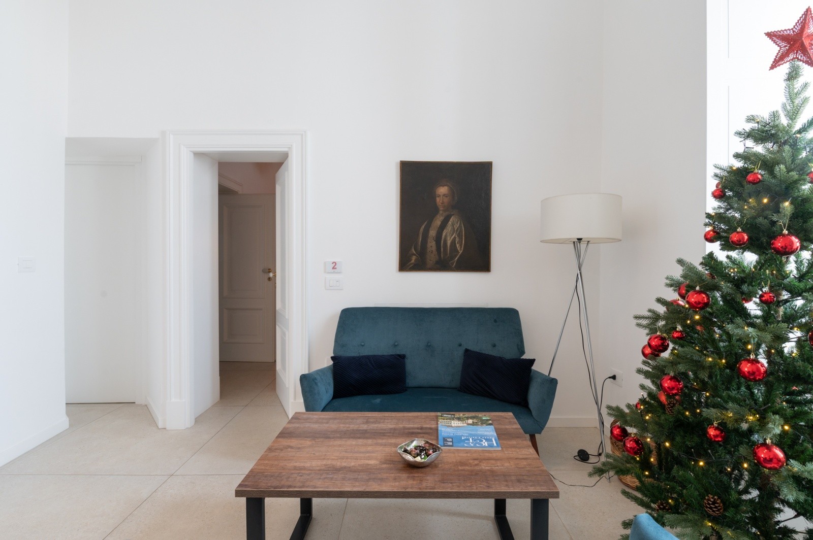 První patro je přístupné jak z interiéru, tak vlastním schodištěm. Nabízí malý vstupní salon a dvě samostatné ložnice, každá s vlastní koupelnou. Jedna z ložnic vyniká historicky dekorovanou klenbou, malým balkónem s výhledem na staré město a prostornou koupelnou s vanou. Druhá ložnice je rovněž samostatná a má vlastní koupelnu. Na tomto patře je také malá společná kuchyňka pro přípravu kávy nebo čaje.