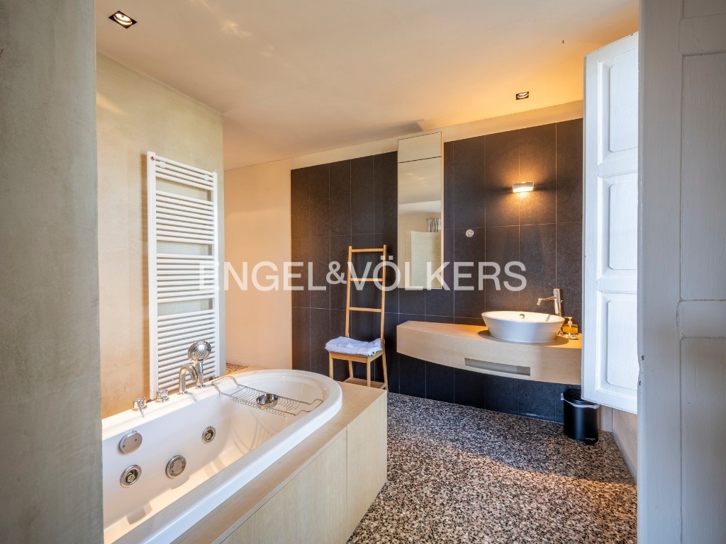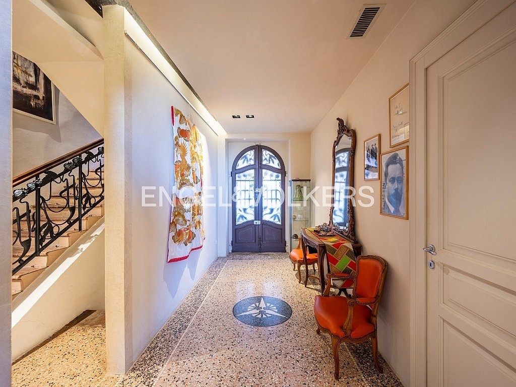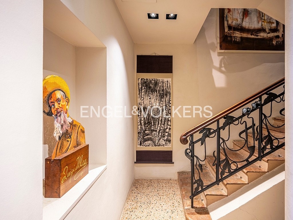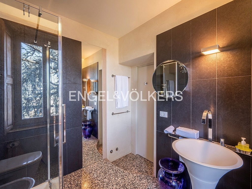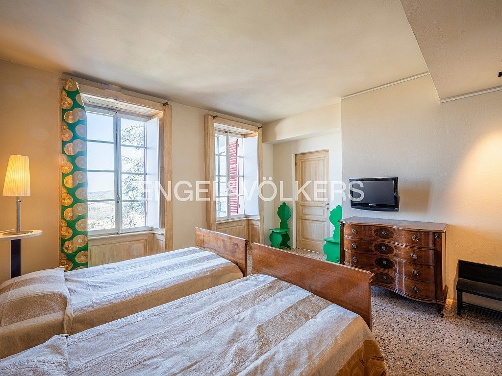 Reprezentativní vstup z ulice Via Sforza Caolzio vede do světlého obývacího pokoje s velkými okny, která otevírají výhled do zahrady a údolí. Na tomto podlaží se nachází také moderní otevřená kuchyně a tři ložnice – dvě dvoulůžkové a jedna jednolůžková – každá s vlastní koupelnou.