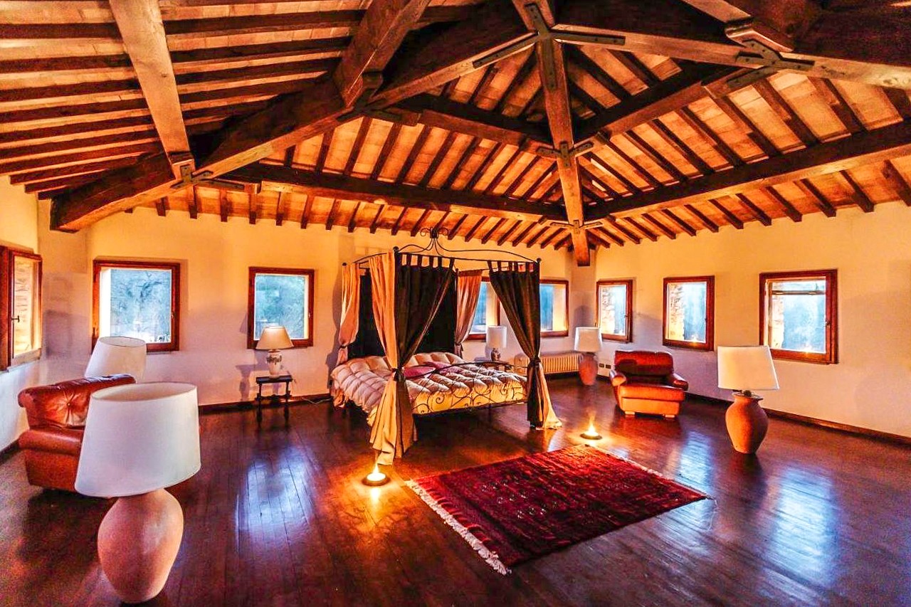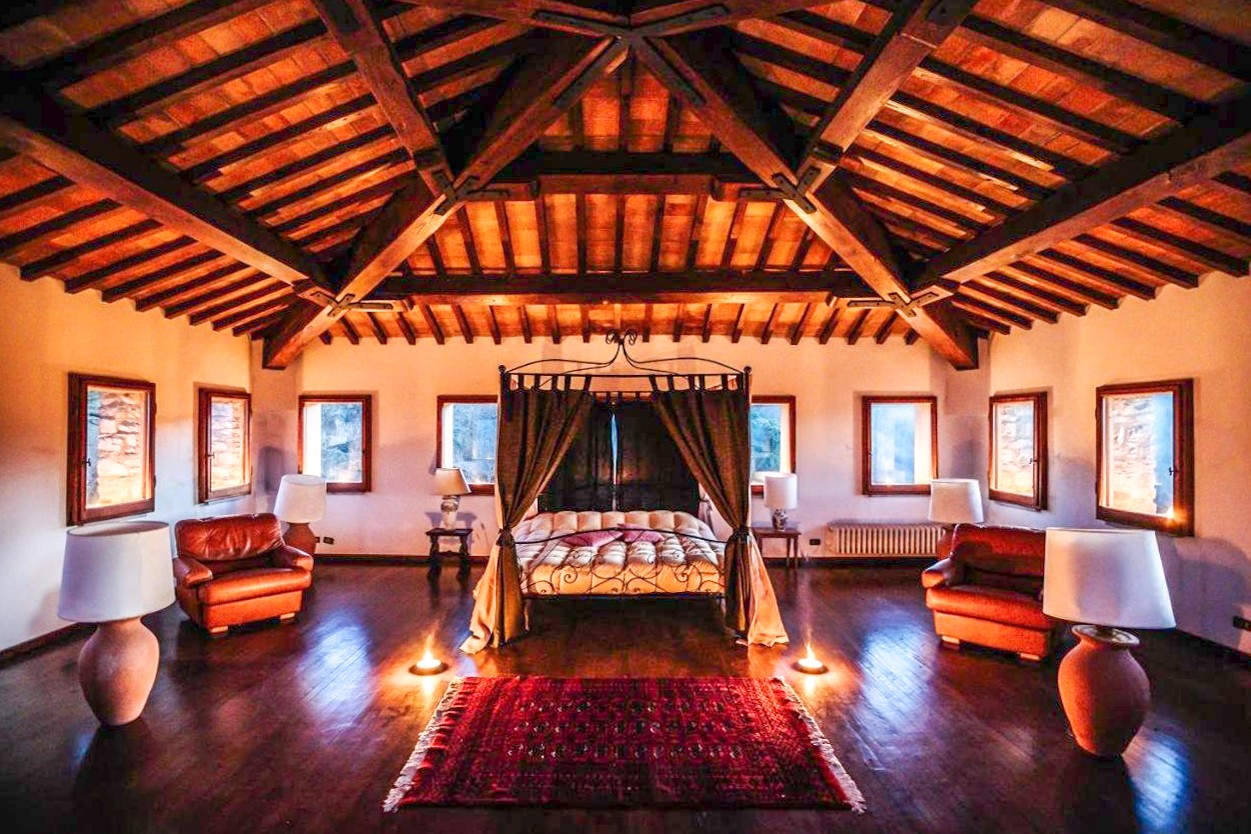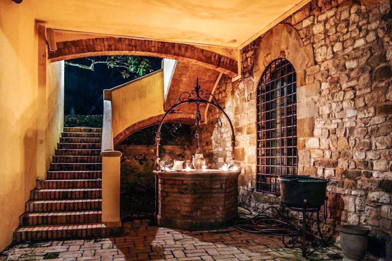 Interiéry byly pečlivě zachovány s úctou k tradici: odkryté dřevěné trámy, originální terakotové podlahy, kamenné krby a středověké oblouky jsou doplněny elegantními detaily a střídmou estetikou.