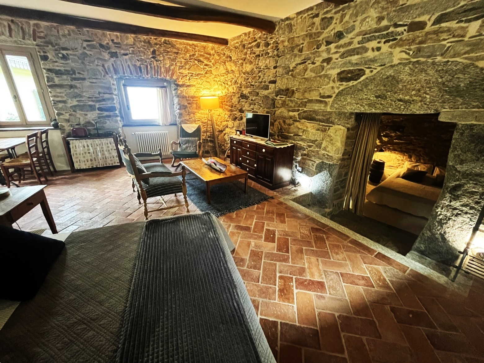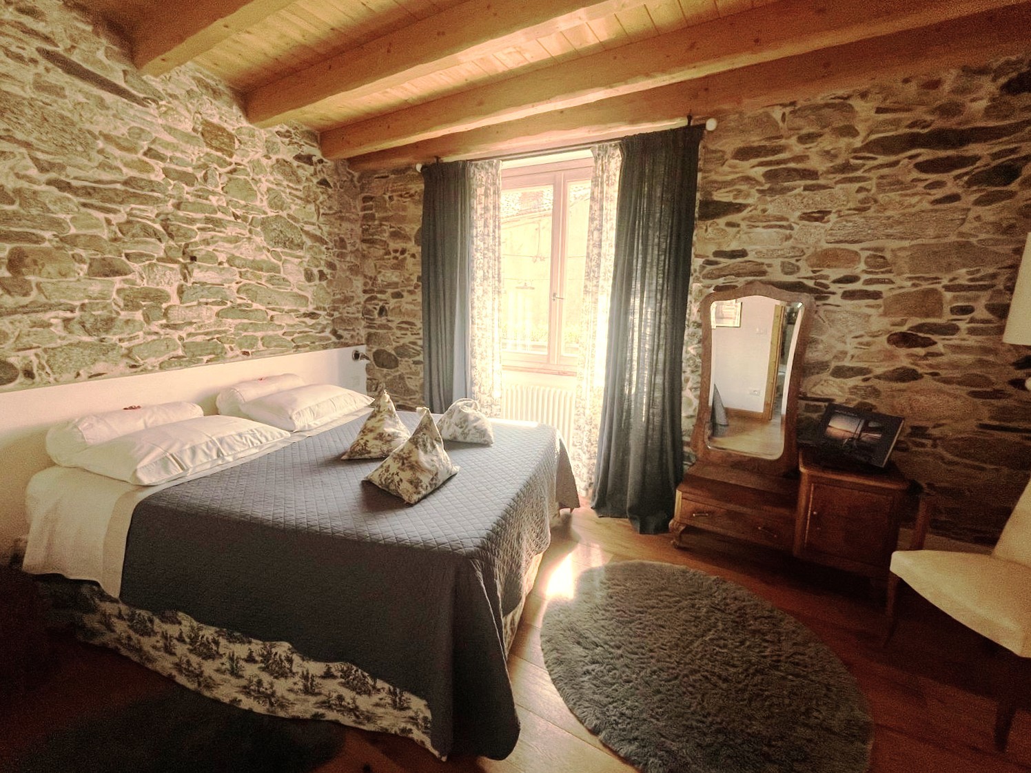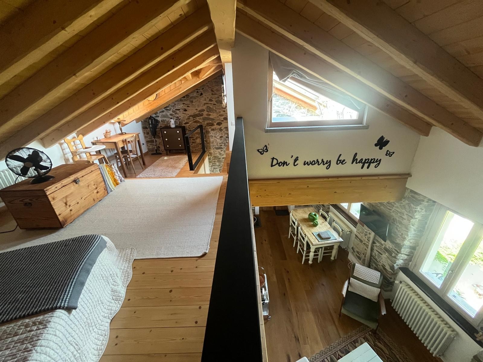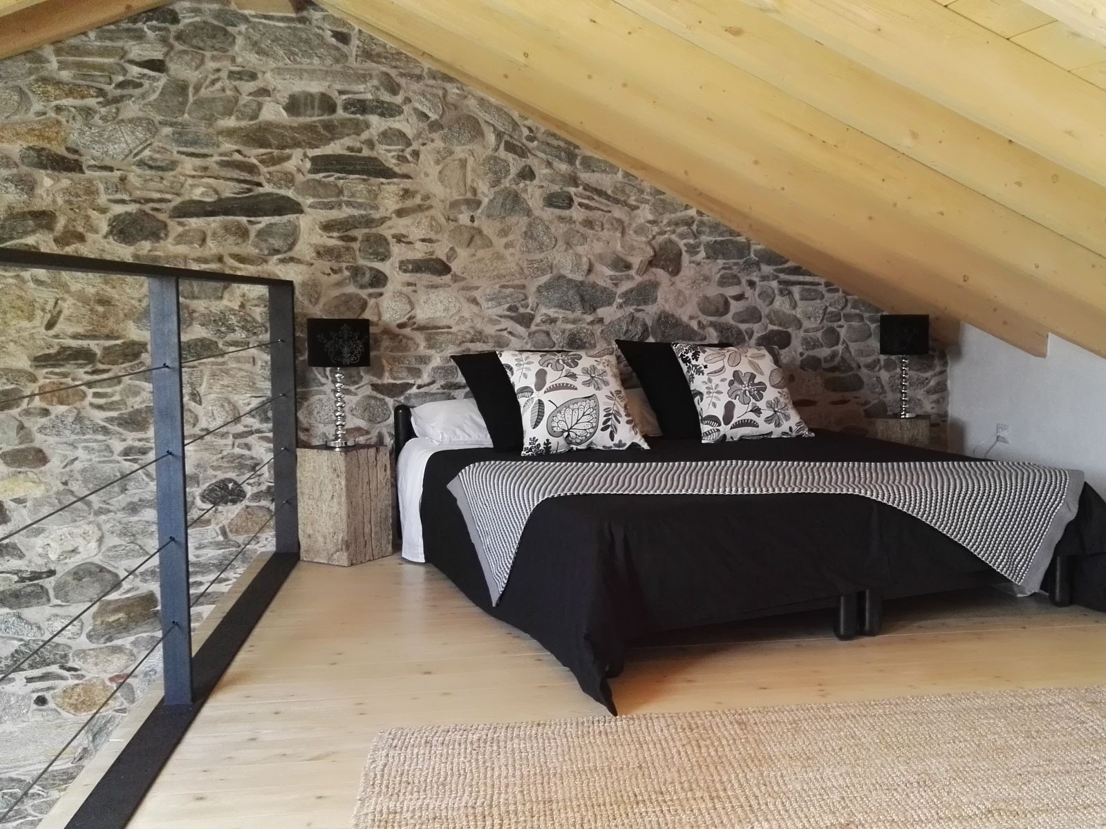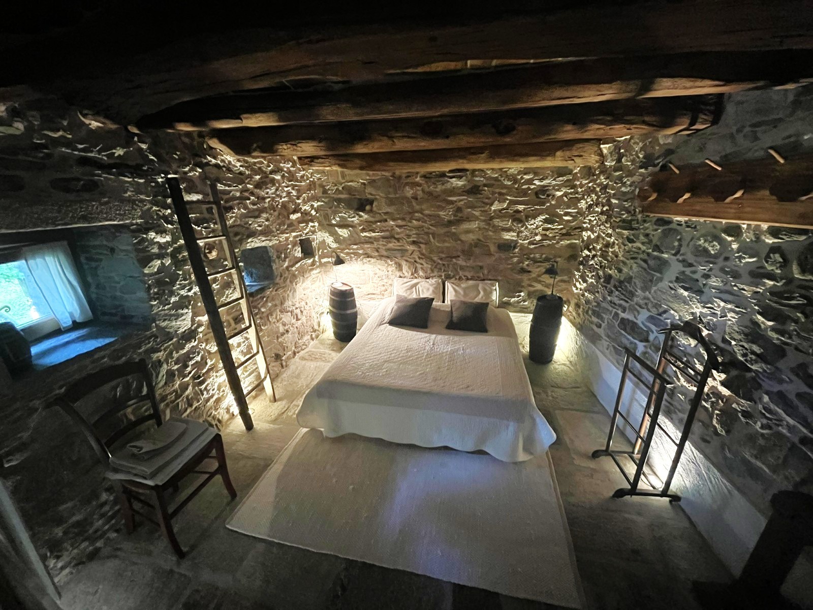 Dvě jednotky – přízemí: studio s koupelnou a přírodní jeskyní; horní patro: loft s kamennými stěnami, obytným prostorem, kuchyní, ložnicí, koupelnou, galerií a panoramatickou terasou s výhledem na jezero.