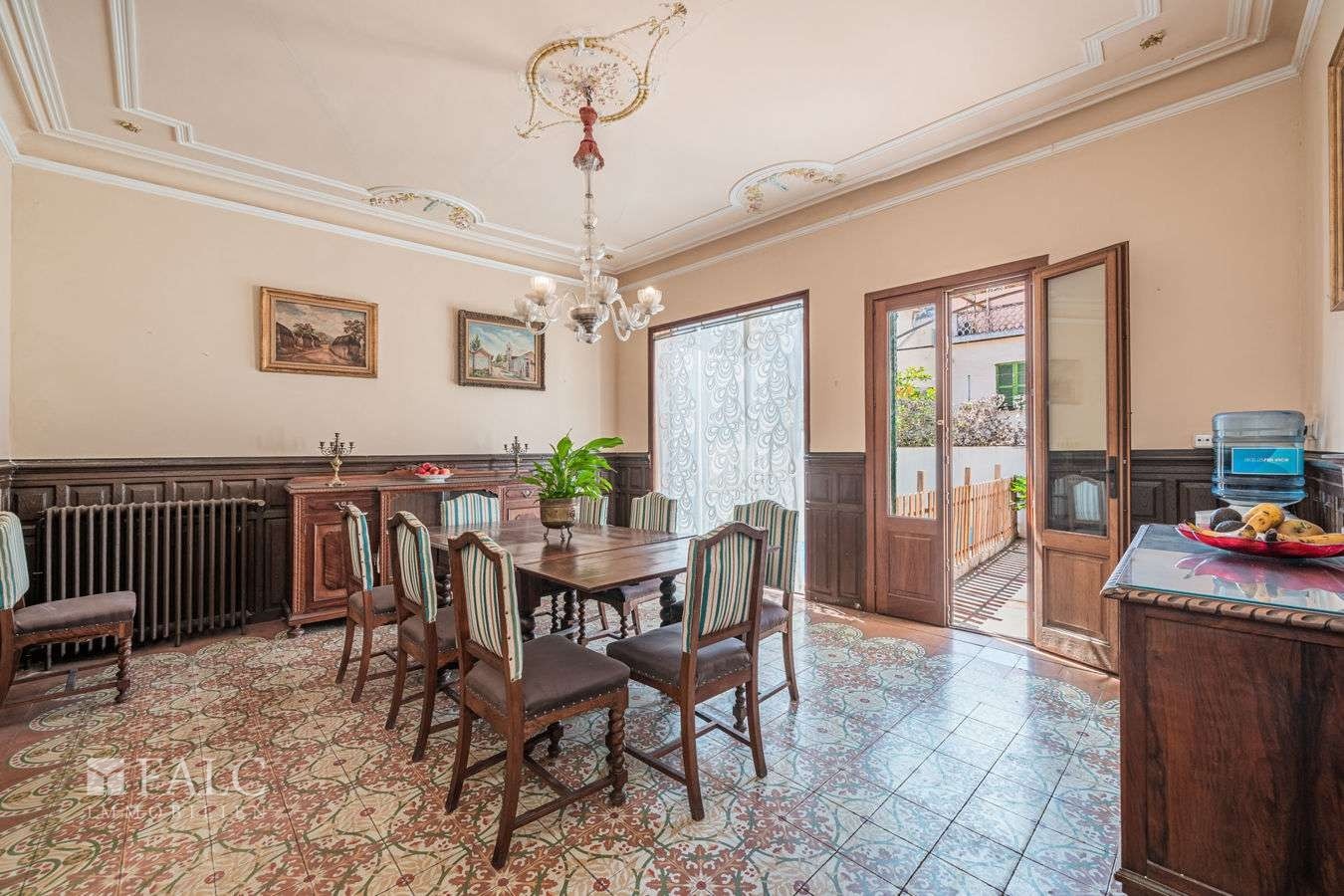 Tento španělský městský palác s kavárnou se nachází v Sóller, jen několik kroků od hlavního náměstí, centra města a různých místních služeb. Nemovitost má tři podlaží, výtah a přibližně 794 m² zastavěné plochy (cca 693 m² obytné plochy).