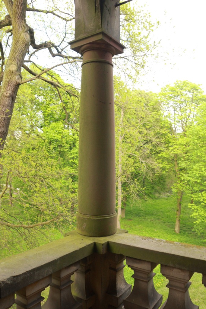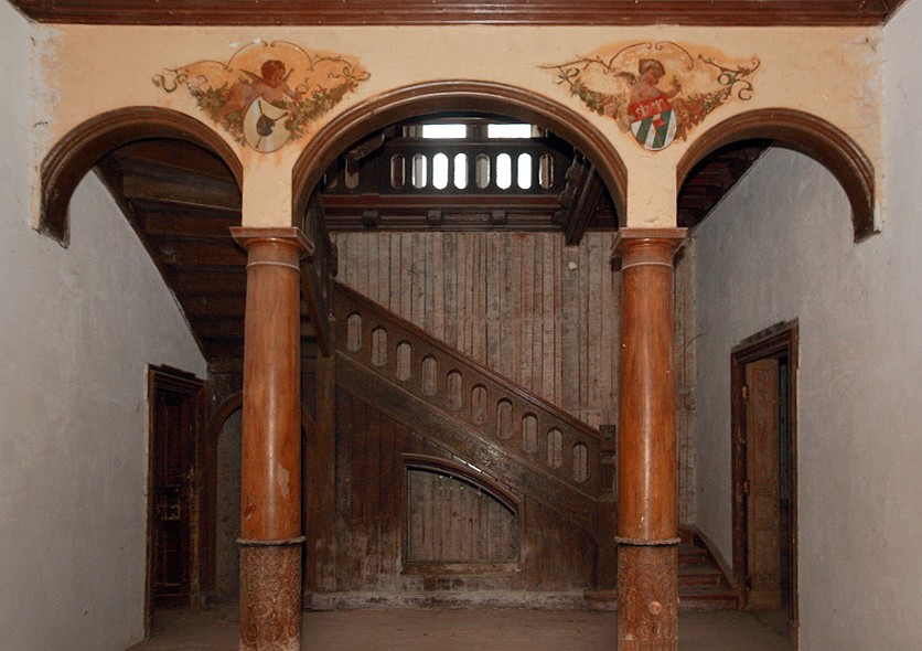 Uvnitř budovy se zachovalo mnoho původních prvků, které jsou charakteristické pro secesní styl: Vrcholem je otevřené dřevěné schodiště s krásně zdobenými sloupy ve vstupní hale. Dále jsou k vidění ozdobné obložení stropu, dveře, výplně a železné kování. Střechy jsou z hladkých tašek, kopule věží a jejich zakončení jsou z mědi.
