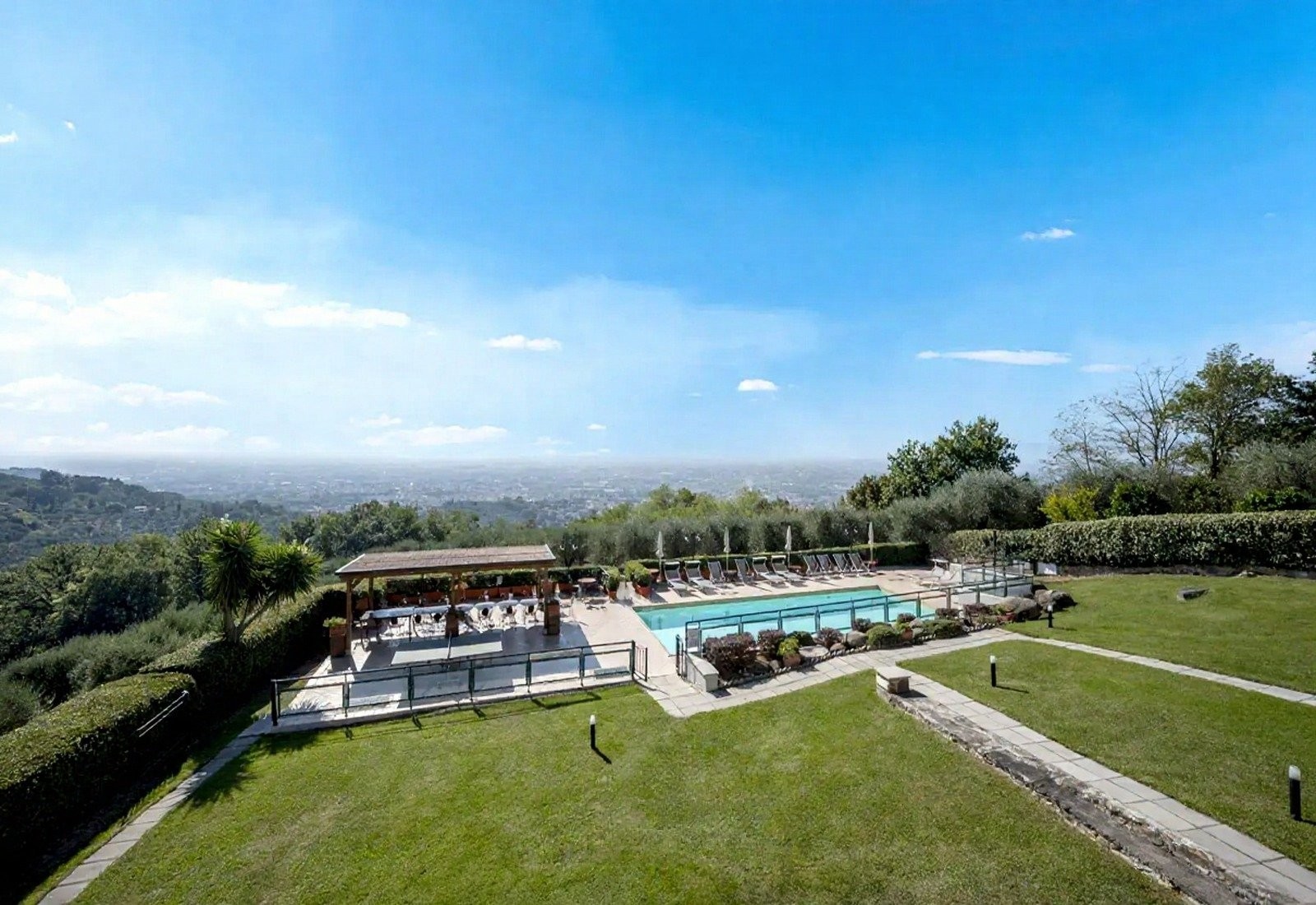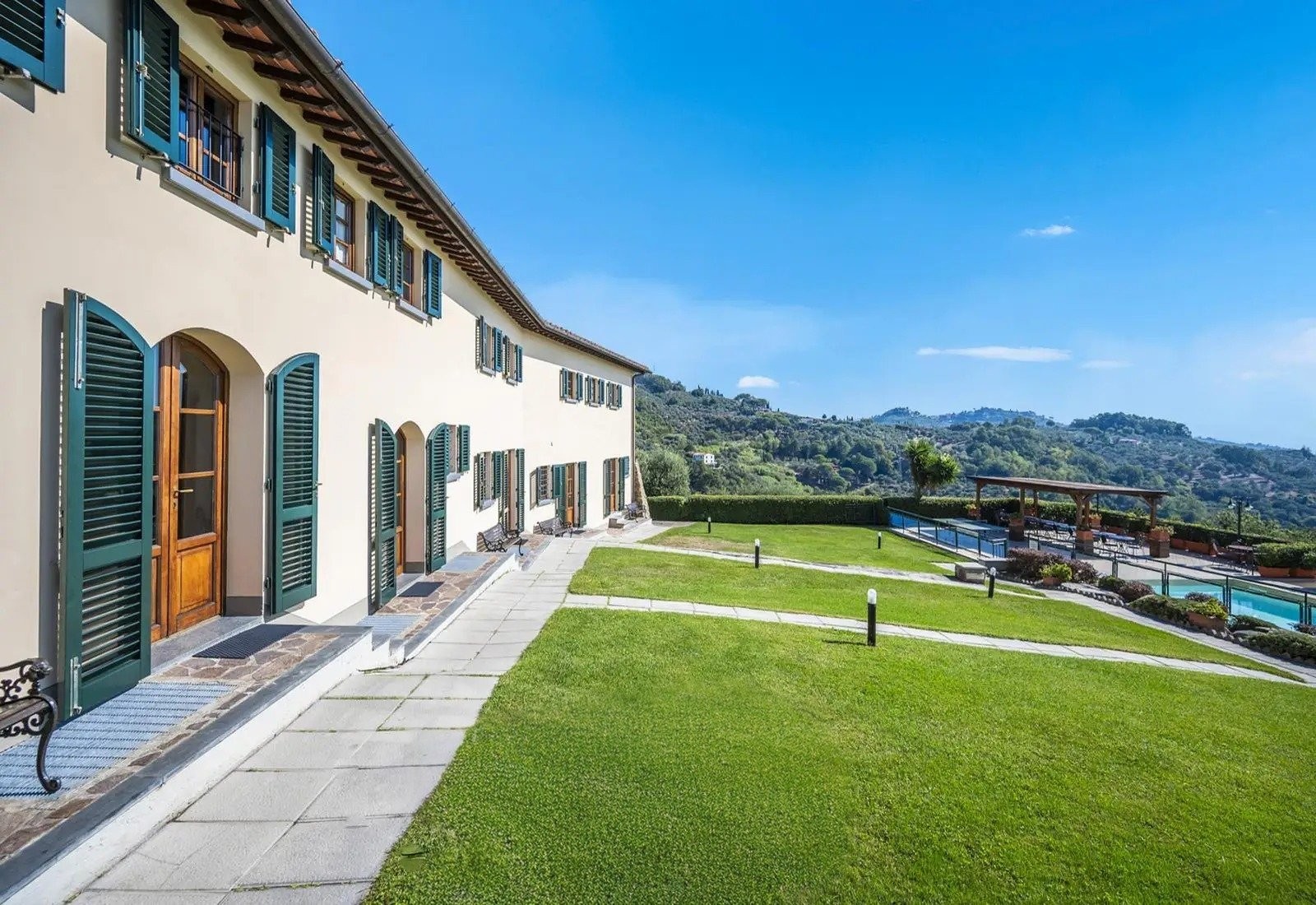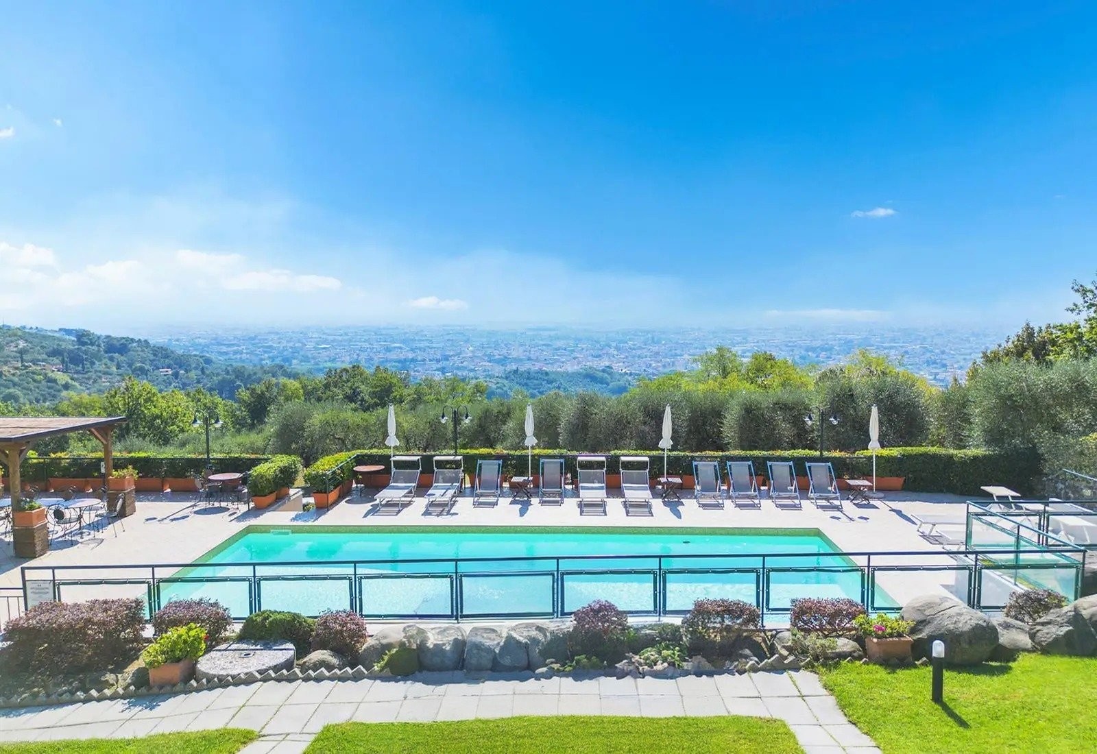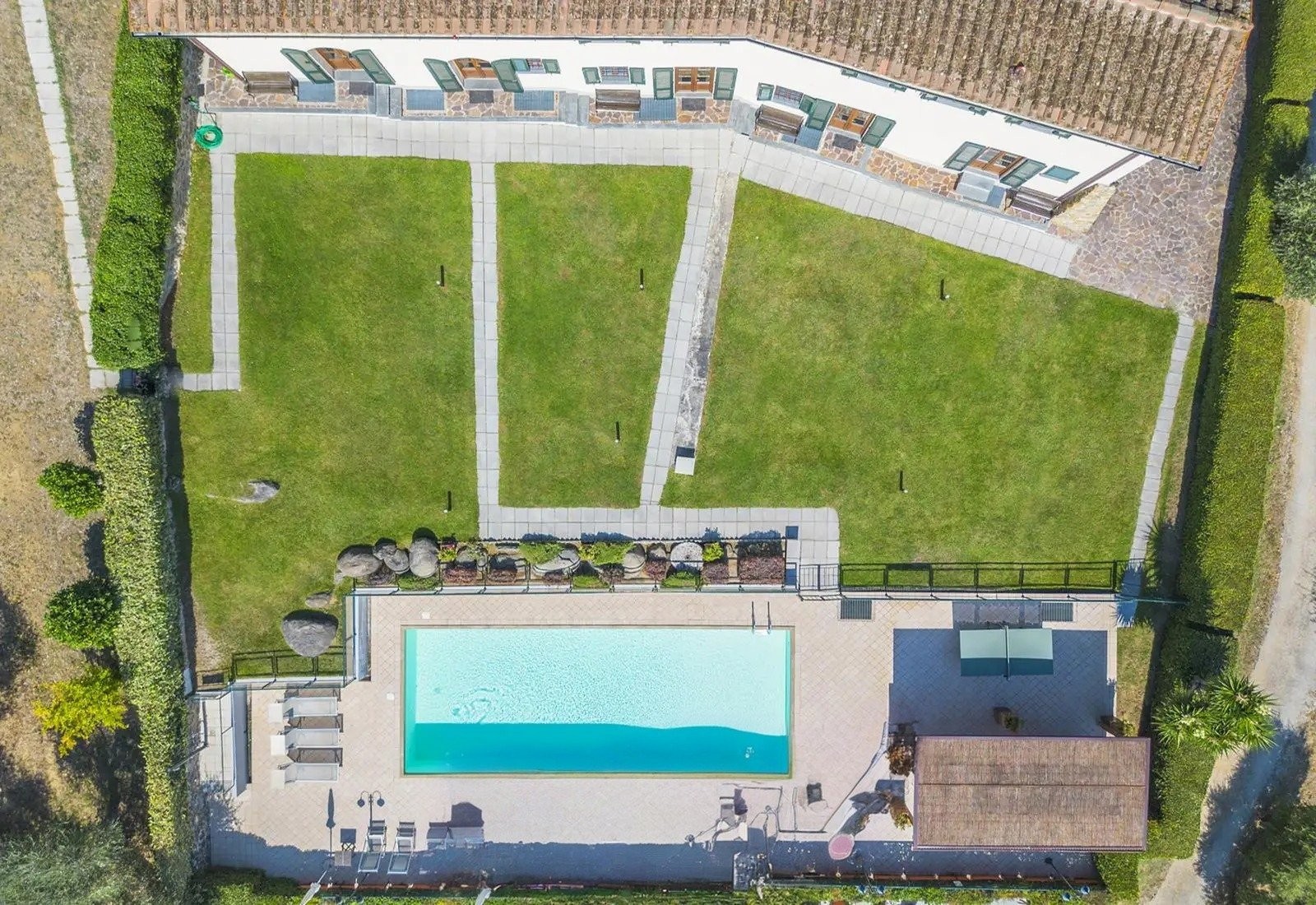 Pozemek si zachovává funkční zemědělský charakter a zároveň nabízí rekreační a sportovní vybavení. Bazén o rozměrech 5,5 × 12 metrů má terasu-solárium s výhledem do údolí a na Montecatini Terme. Na pozemku jsou rovněž sportovní plochy pro volejbal, fotbal, basketbal a badminton, zastřešený pavilon s grilem a ohniště. Umístění a orientace pozemku umožňuje nezávislý provoz rekreačních zařízení vzhledem k obytným prostorám, s optimálním přirozeným větráním a panoramatickými výhledy.