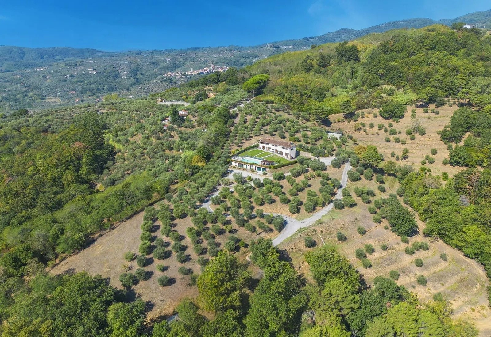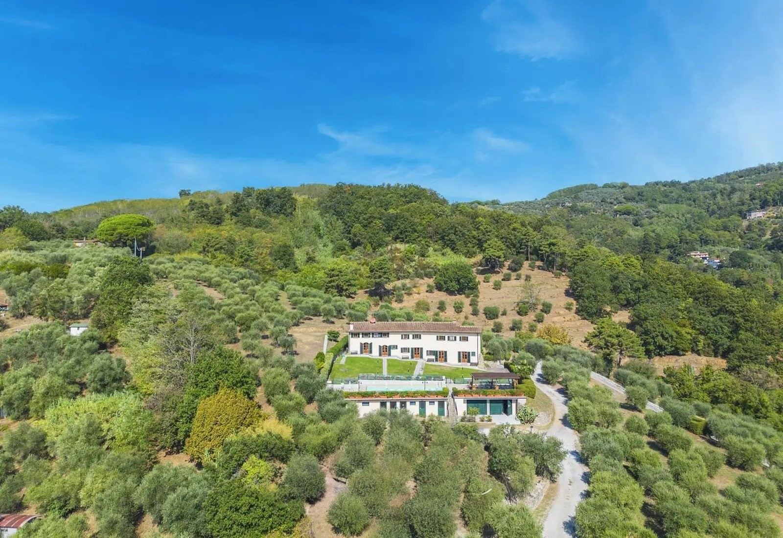 Villa Marsetti se nachází na vyvýšené poloze na hřebeni s výhledem na Montecatini Terme, obklopena deseti hektary soukromého pozemku, který zahrnuje olivové háje s více než 500 stromy, ovocné sady a zralý borovicový les. Nemovitost kombinuje rezidenční infrastrukturu s zemědělskou půdou a je situována v typickém toskánském kopcovitém prostředí.