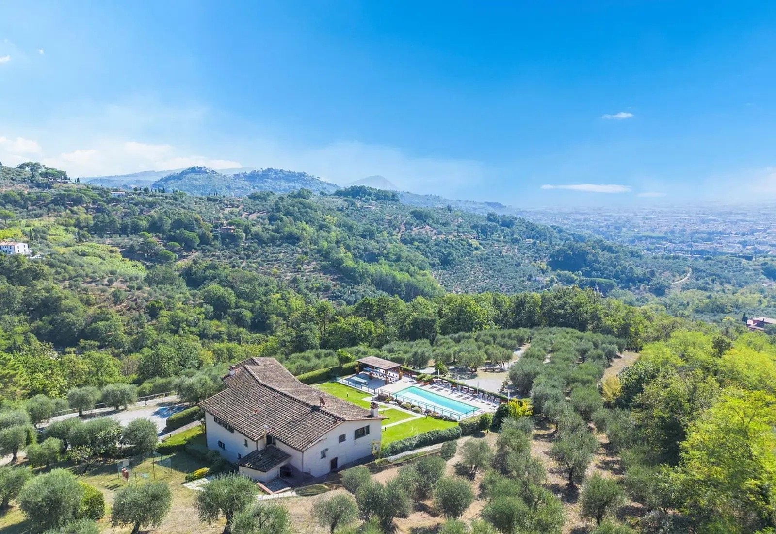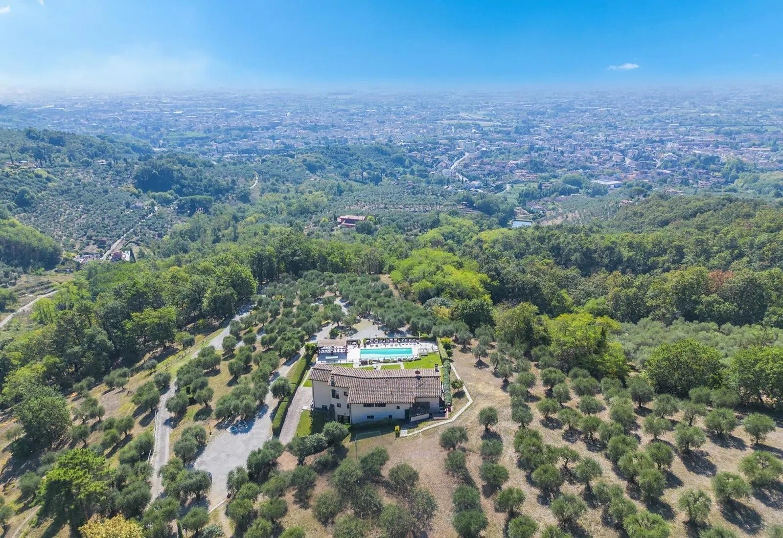 Montecatini Terme leží u paty nemovitosti a je známé svými lázeňskými zařízeními z období Belle Époque a secesní architekturou. Město poskytuje veškeré místní služby a železniční spojení. Florencie je vzdálena 50 km, Lucca 35 km, Pistoia 15 km a Pisa 60 km. Letiště ve Florencii (Peretola) je 55 km a mezinárodní letiště Pisa 65 km. Vila kombinuje soukromí, díky topografii a soukromému přístupu, s snadnou dostupností do sítě toskánských kopcovitých vesnic.