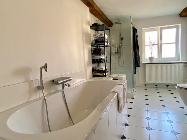 Vybavení: plynové ústřední vytápění (obnoveno v roce 2000), plastová okna s izolačním dvojsklem, všechny koupelny renovovány před pěti lety, satelitní a zabezpečovací systém, technická místnost s přípojkami pro pračku a sušičku.