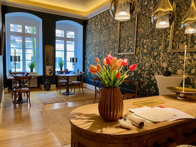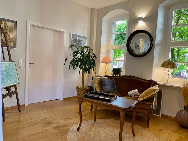 Dům nabízí 12 místností a 4 koupelny. Zachovány jsou původní stropní trámy v hale i v několika místnostech, masivní dřevěné podlahy a původní kamenná podlaha v hale. Součástí je klenutý sklep. Podkroví nabízí potenciál k dalšímu využití. Dva vstupy: hlavní vstup z pěší zóny a druhý vstup z vnitřního dvora. Parkovací místo před dvorem.