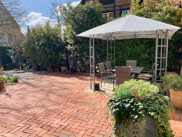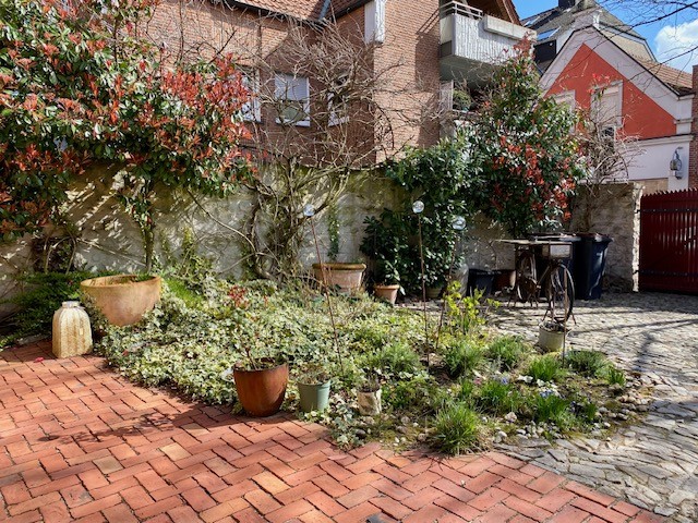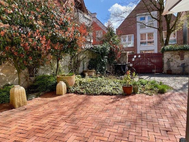 Vnitřní zahrada má pohledovou osu směrem ke kostelu.