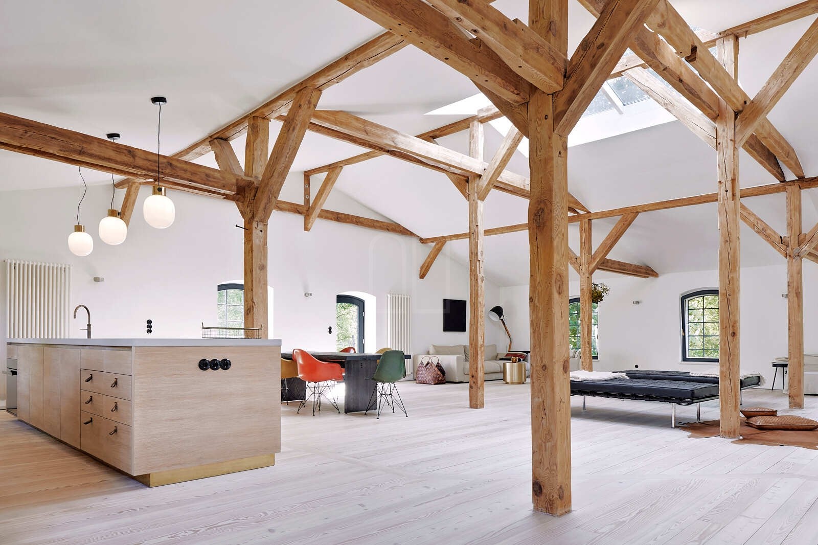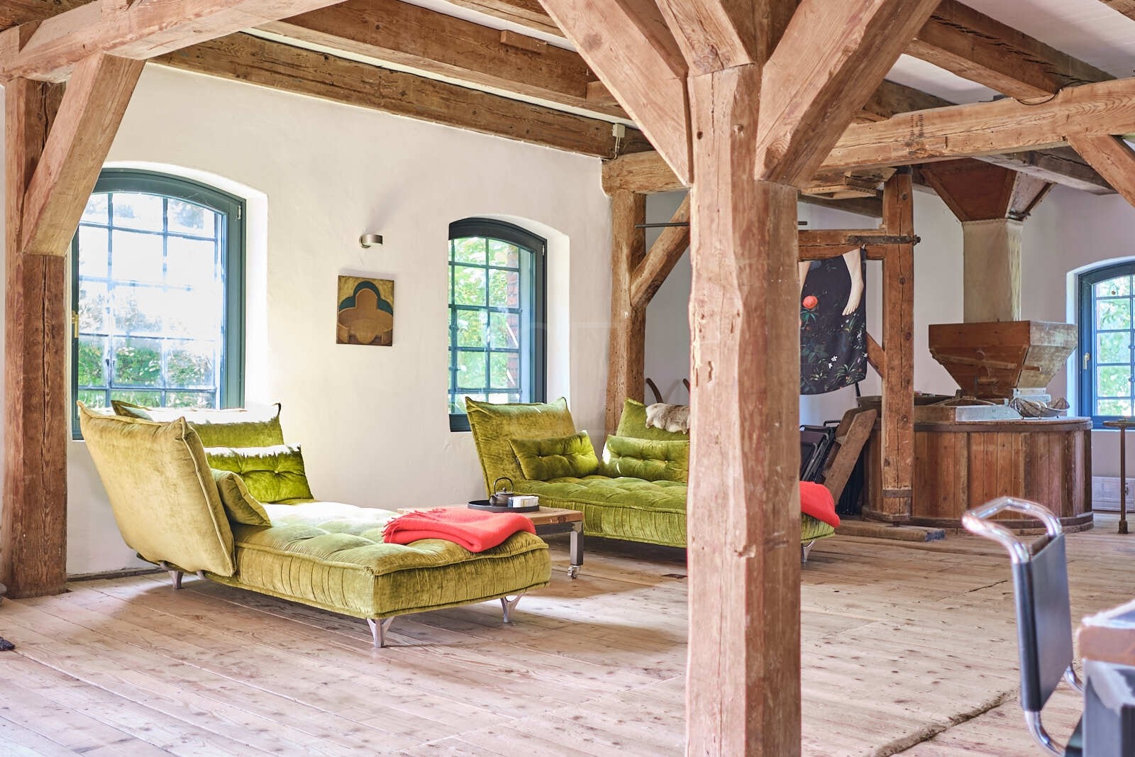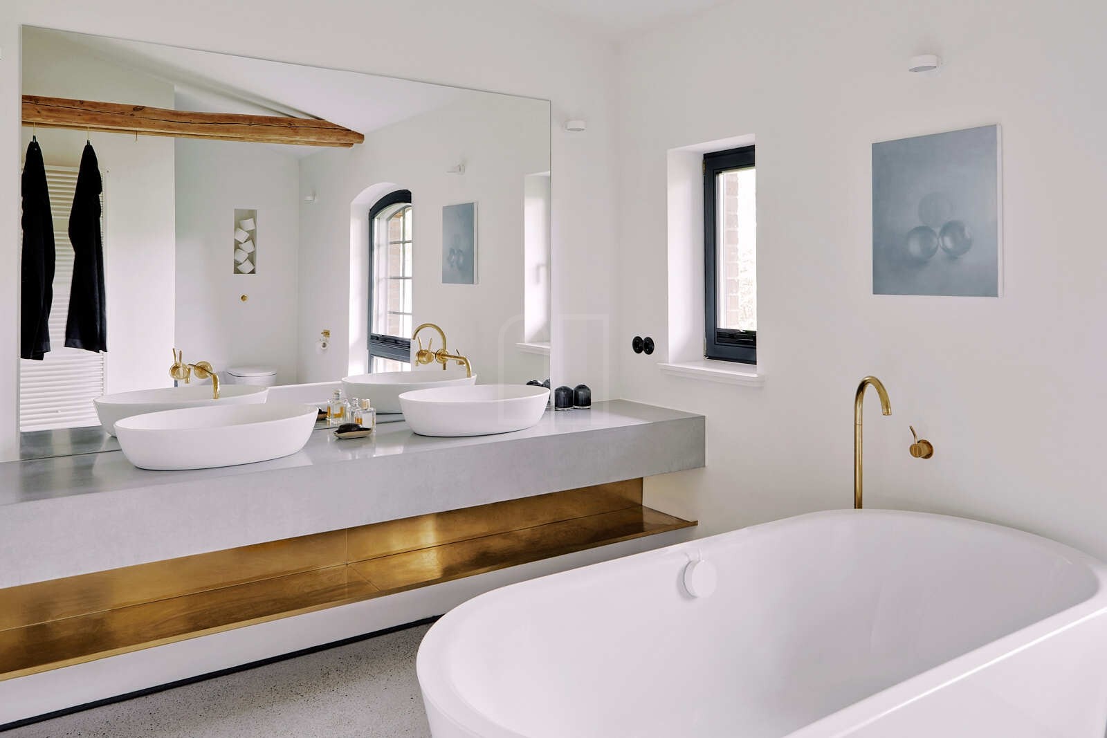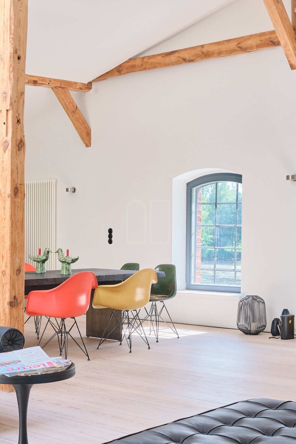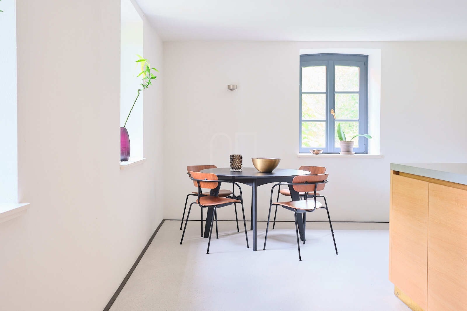 Od mlýna k designovému památkovému objektu: tento historický vodní mlýn, citlivě zrekonstruovaný, nabízí prostorné místnosti k snění. Na třech podlažích se unikátní interiéry kombinují historické cihly, moderní ocelové prvky a nábytek na míru z dubu a pohledového betonu.