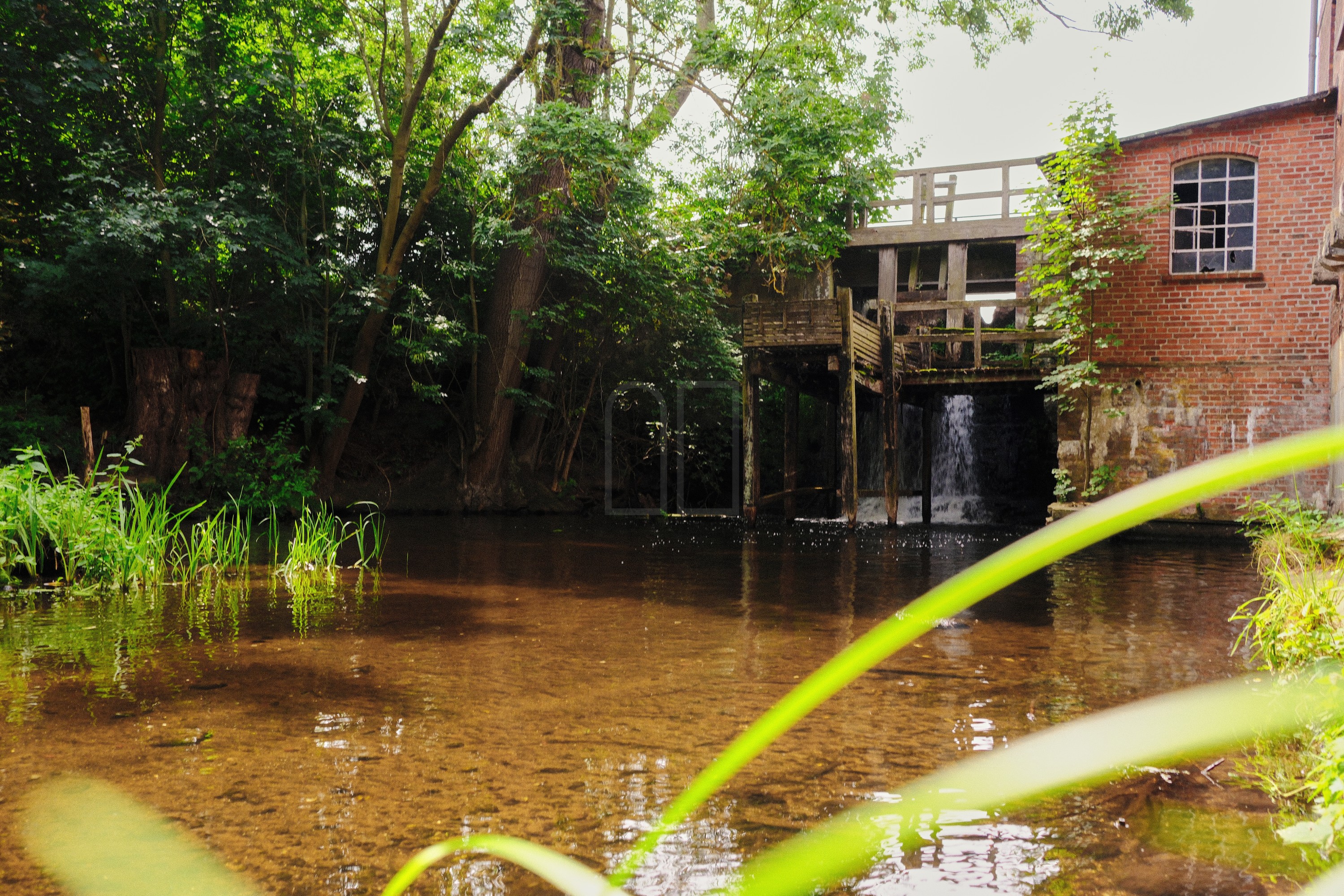 Historický vodní mlýn po rekonstrukci v severním Německu, nedaleko Hamburku