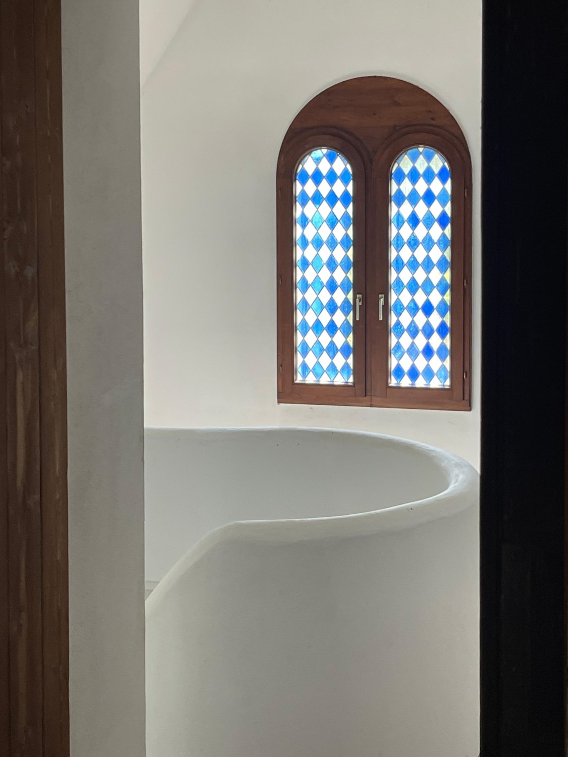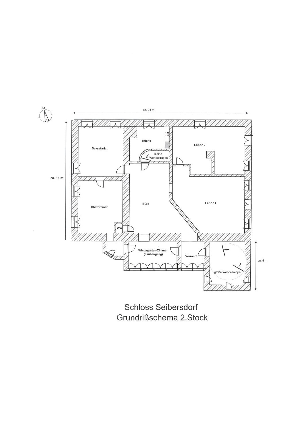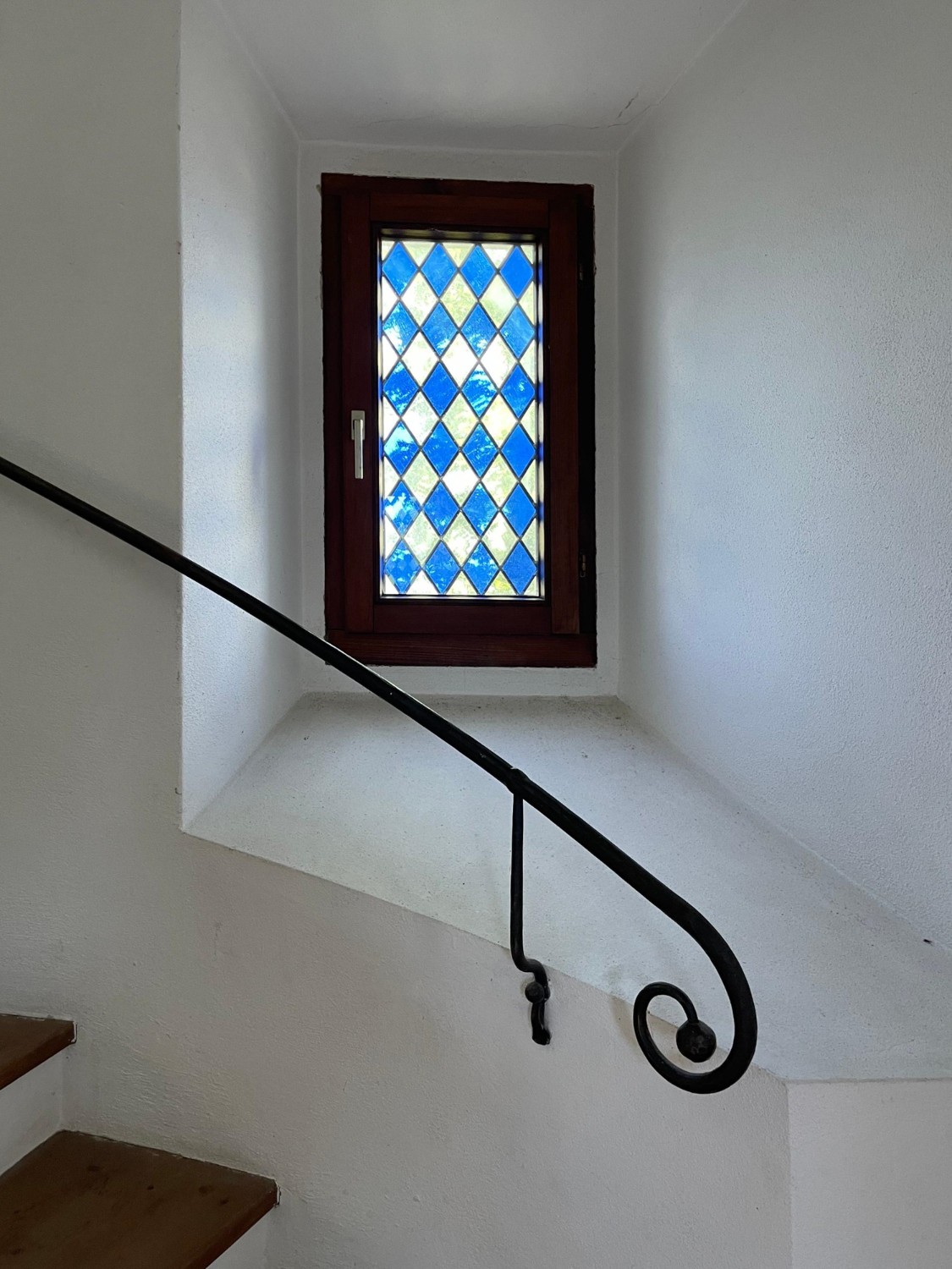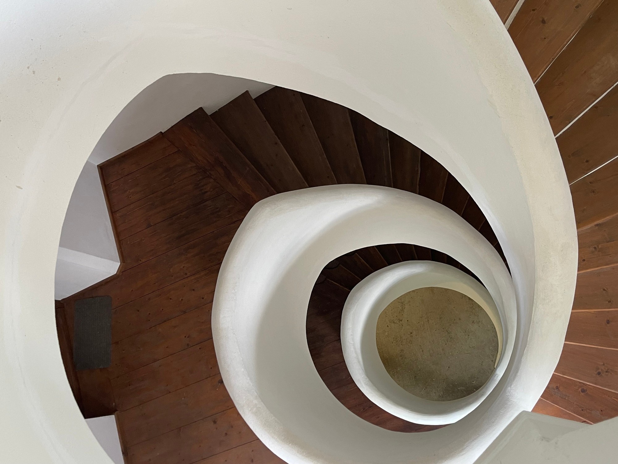 - Malé vnitřní točité schodiště z Beletage (byt cca 200 m² v 1. patře, 1 pokoj ve stavu hrubé stavby) do 2. patra (aktuálně kanceláře)