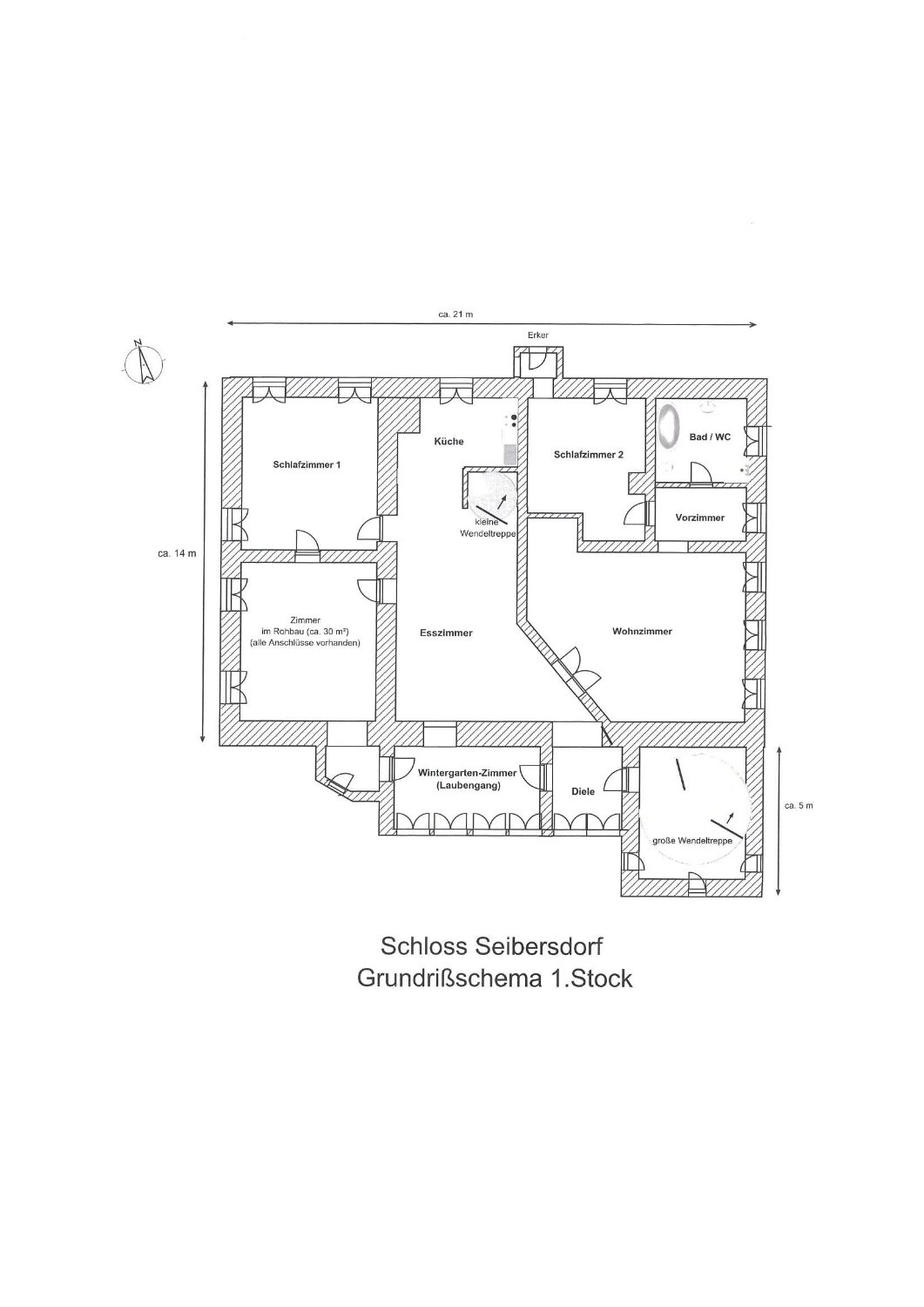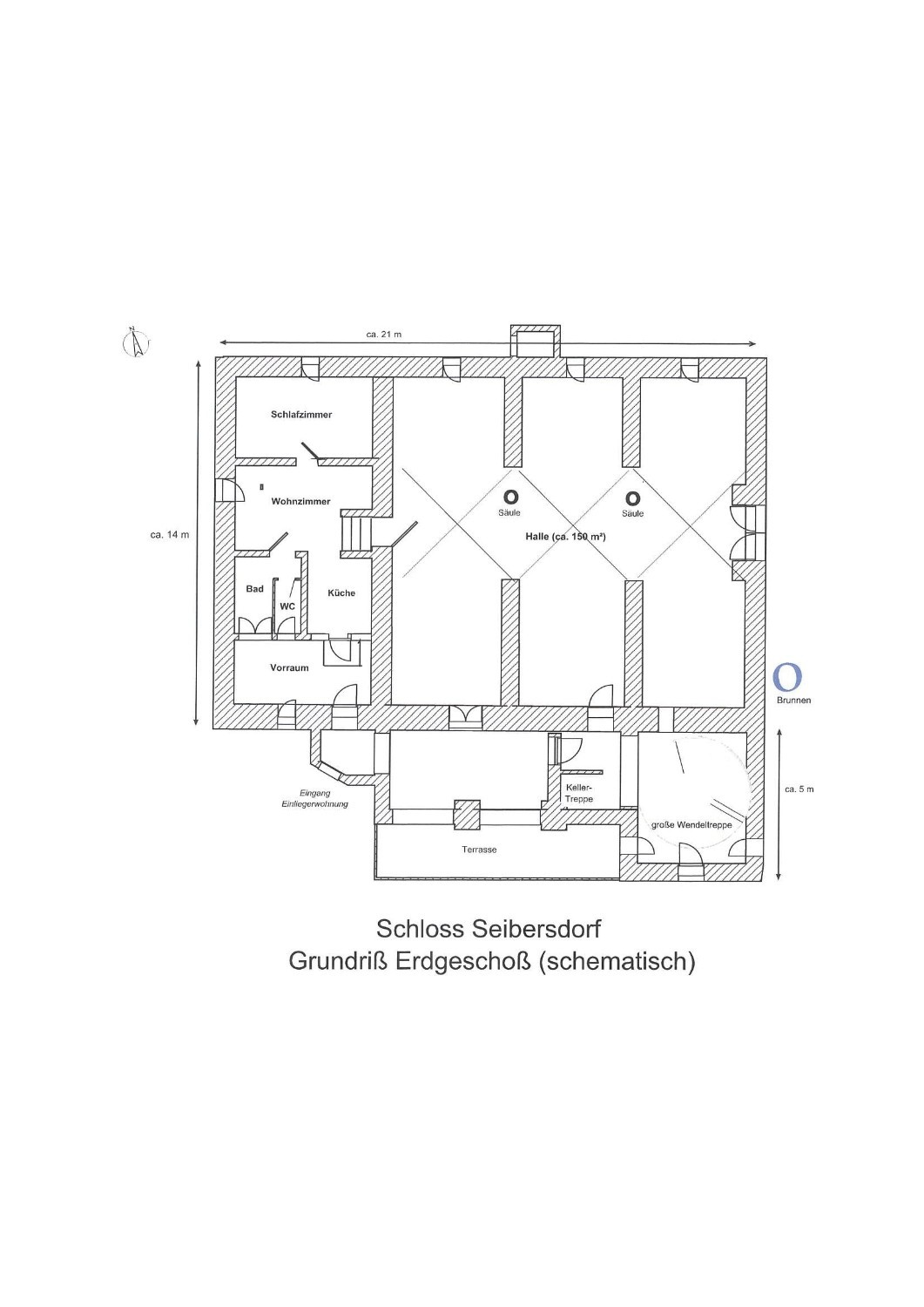 Zámeček Seibersdorf (12./15. století) se nachází ve stejnojmenné vesnici (325 obyvatel) na slunné terase s výhledem do údolí řeky Inn. Klidné a soukromé místo v rozlehlé zahradě o ploše cca 4 400 m² se starými duby, buky a lípami. Jihozápadně orientovaný pozemek zahrnuje biotop s prameny a potůčky, artéskou studnu (cca 200 m hlubokou), velkou fontánu a historickou studnu před branou zámečku. Na východě se nachází obecní náměstí.