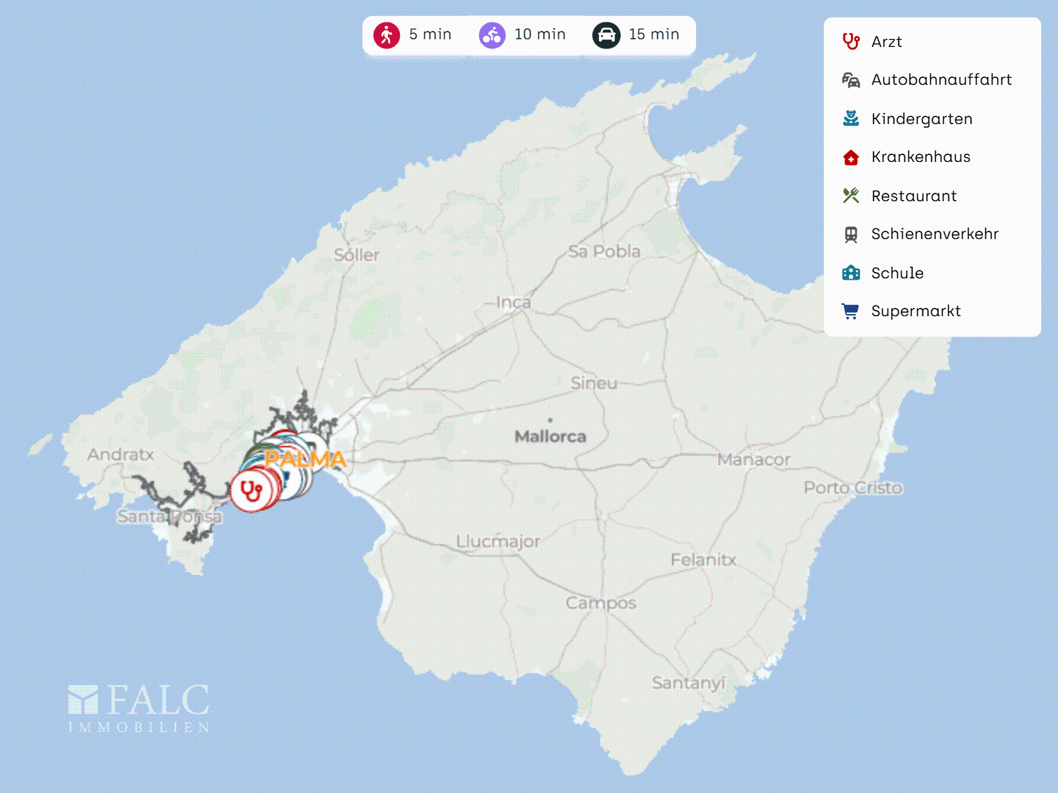 Doprava: Zastávky autobusů cca 200 a 250 m. Sjezd na dálnici cca 300 m. Letiště Palma de Mallorca cca 20 km.