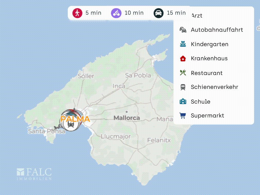 Hrad Bellver se nachází v blízkosti a je vhodný pro procházky. Pláž Cala Major je dostupná během několika minut jízdy autem. V okolí jsou rovněž sportovní zařízení, jako tenisový klub a fitness centra.