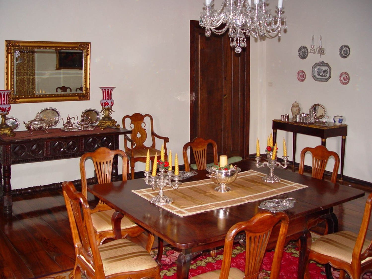 U-formátová budova má nádherné schodiště s balustrádou a chodbu, prostorné pokoje s předním nádvořím a zadní verandou a dlouhou neprůhlednou fasádu směrem k veřejné silnici.