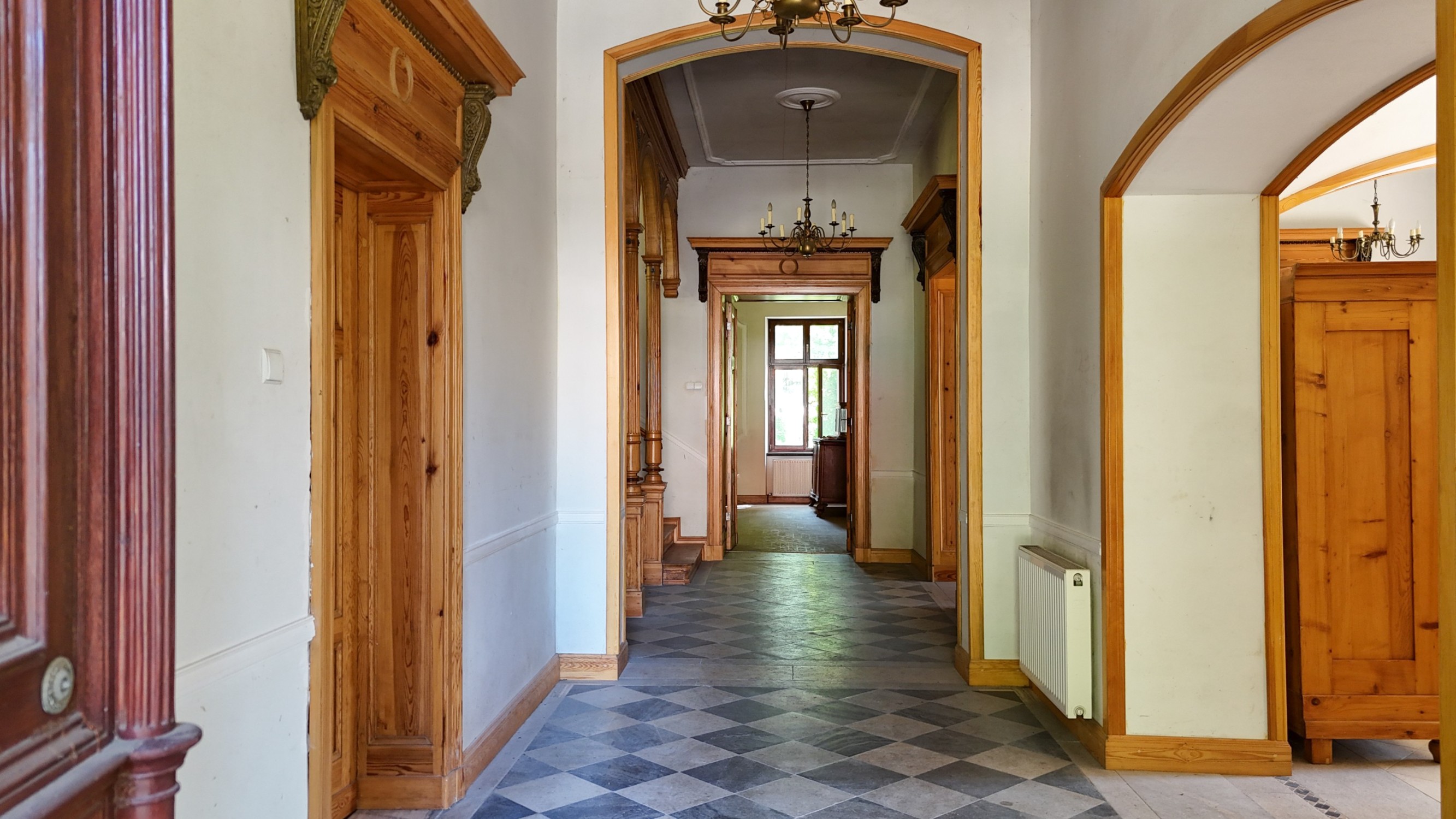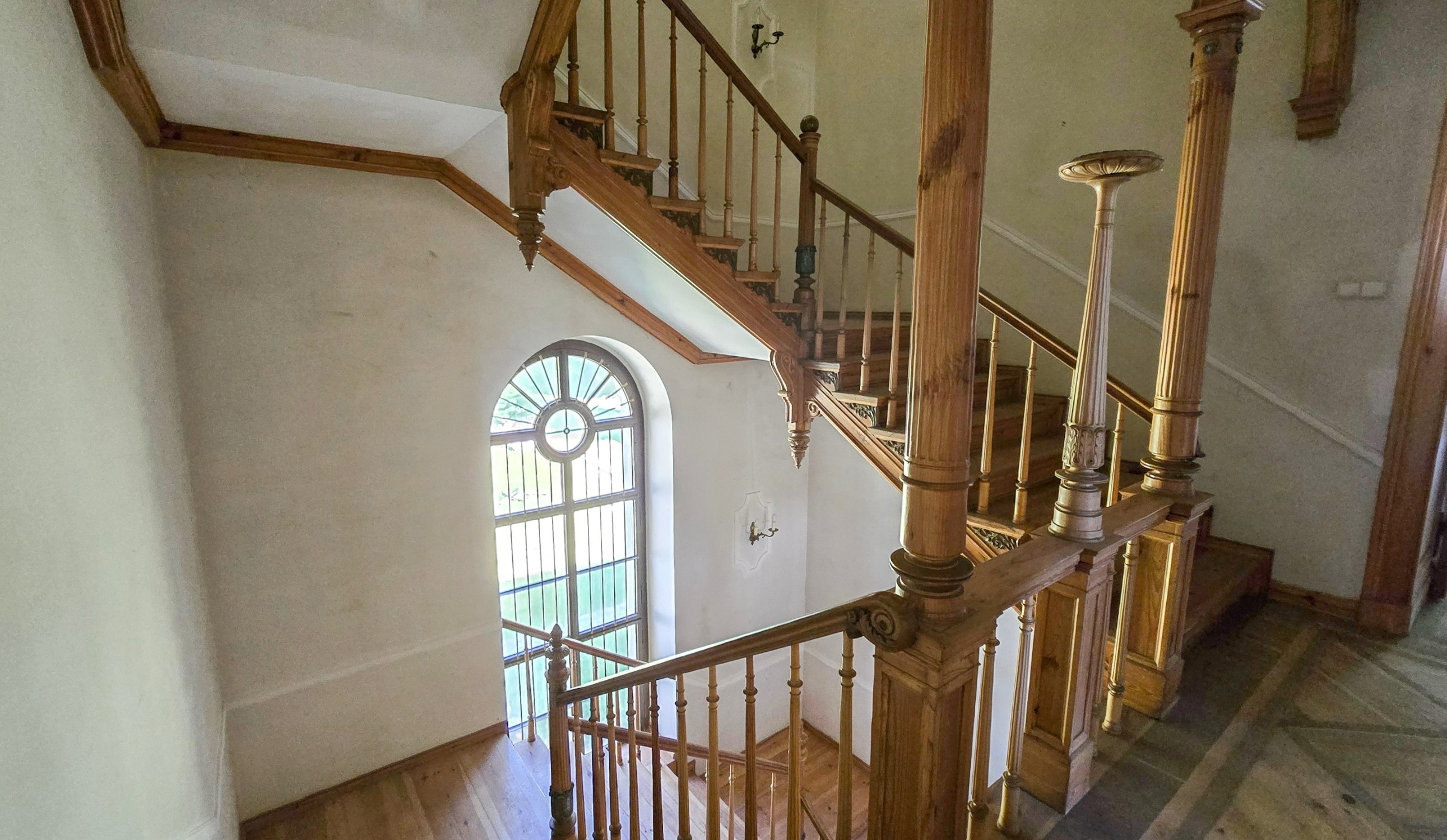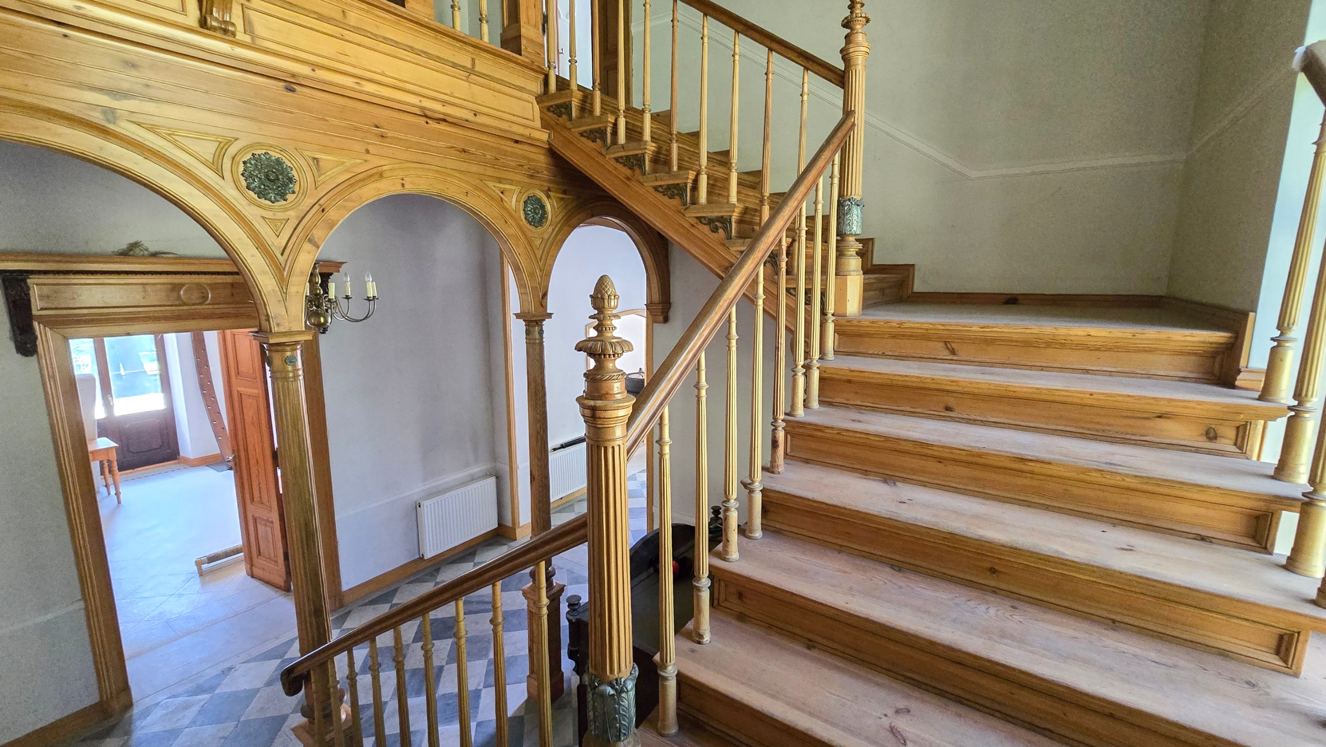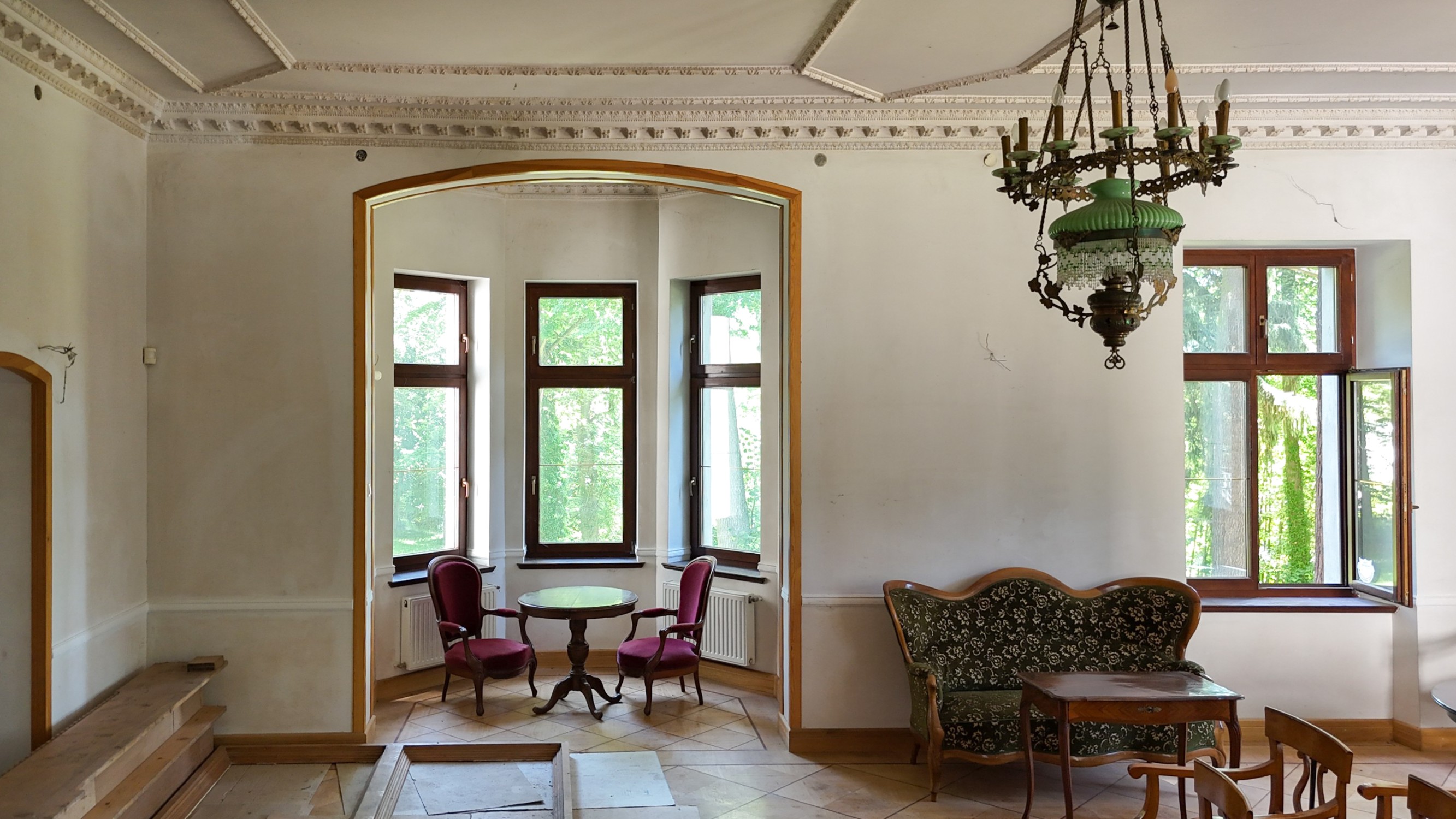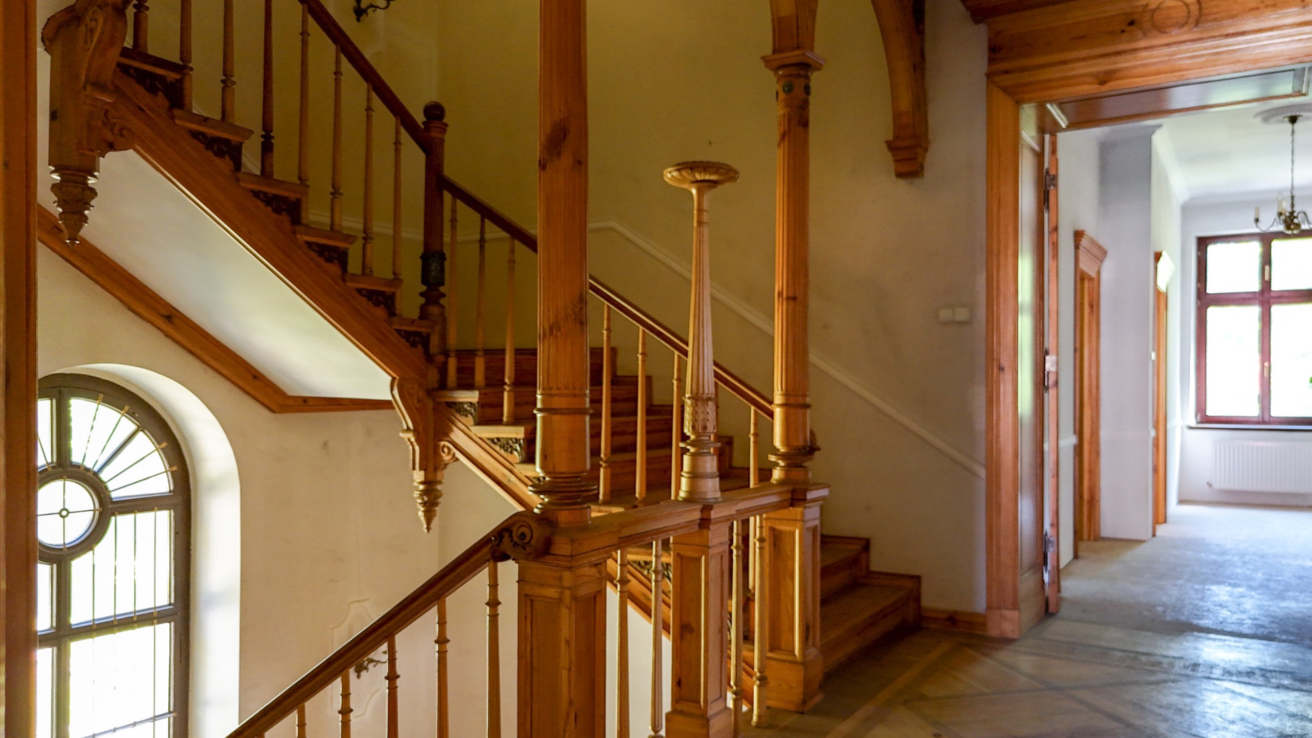Uvnitř zaujmou rekonstruované štuky, řezané balustrády a původní dřevěné podlahy.