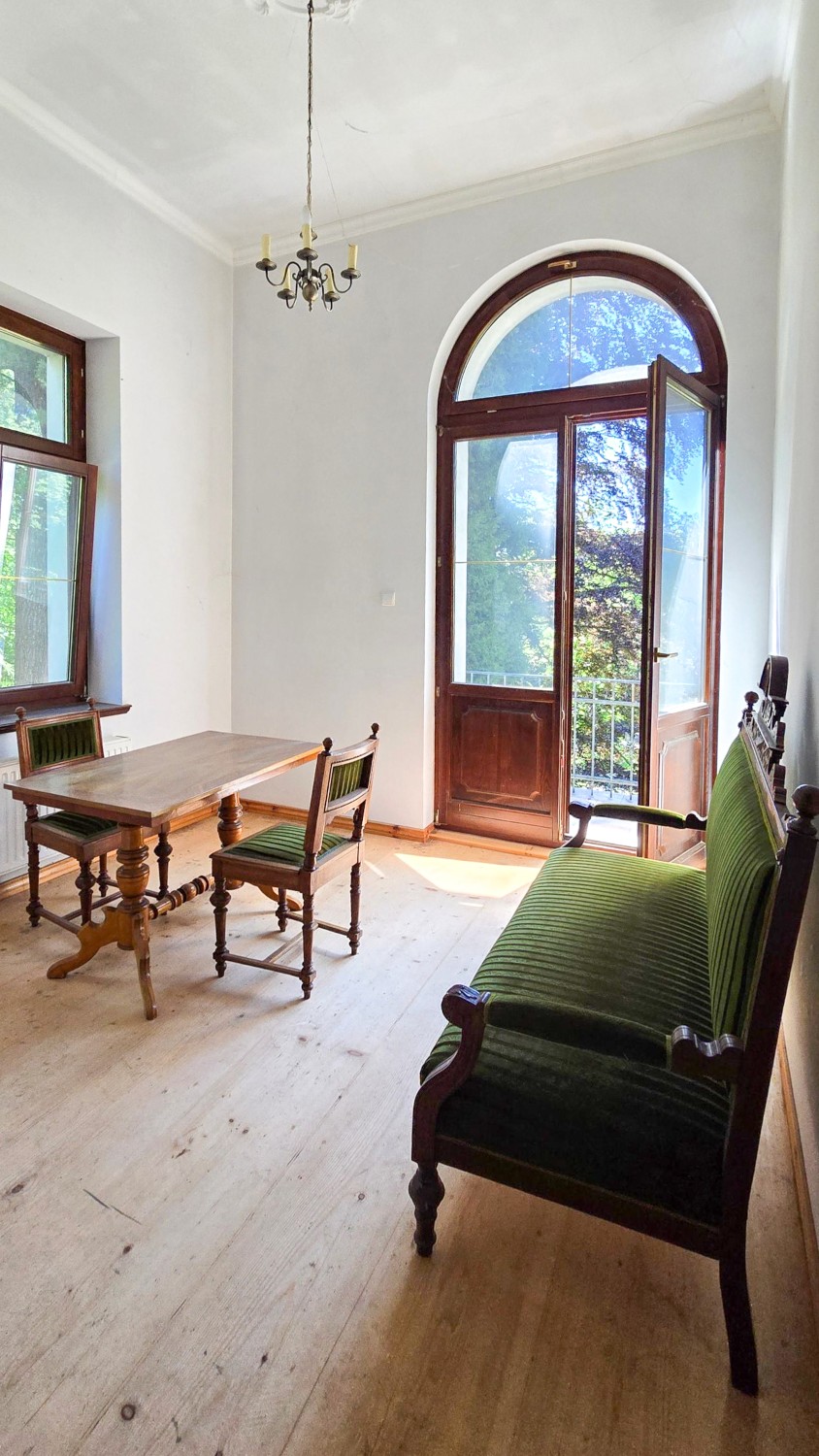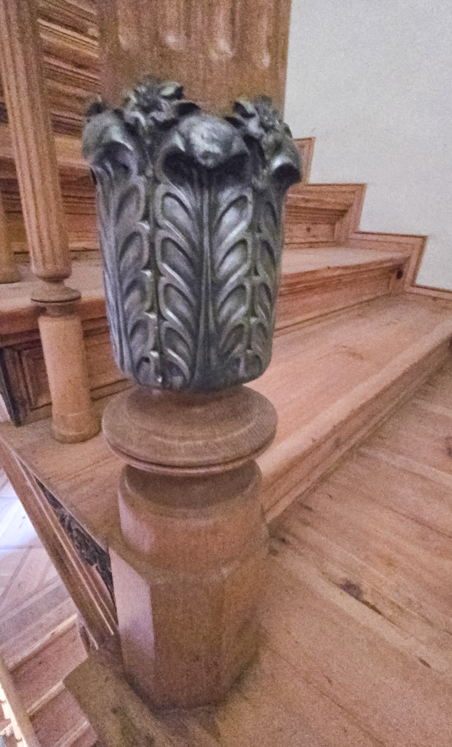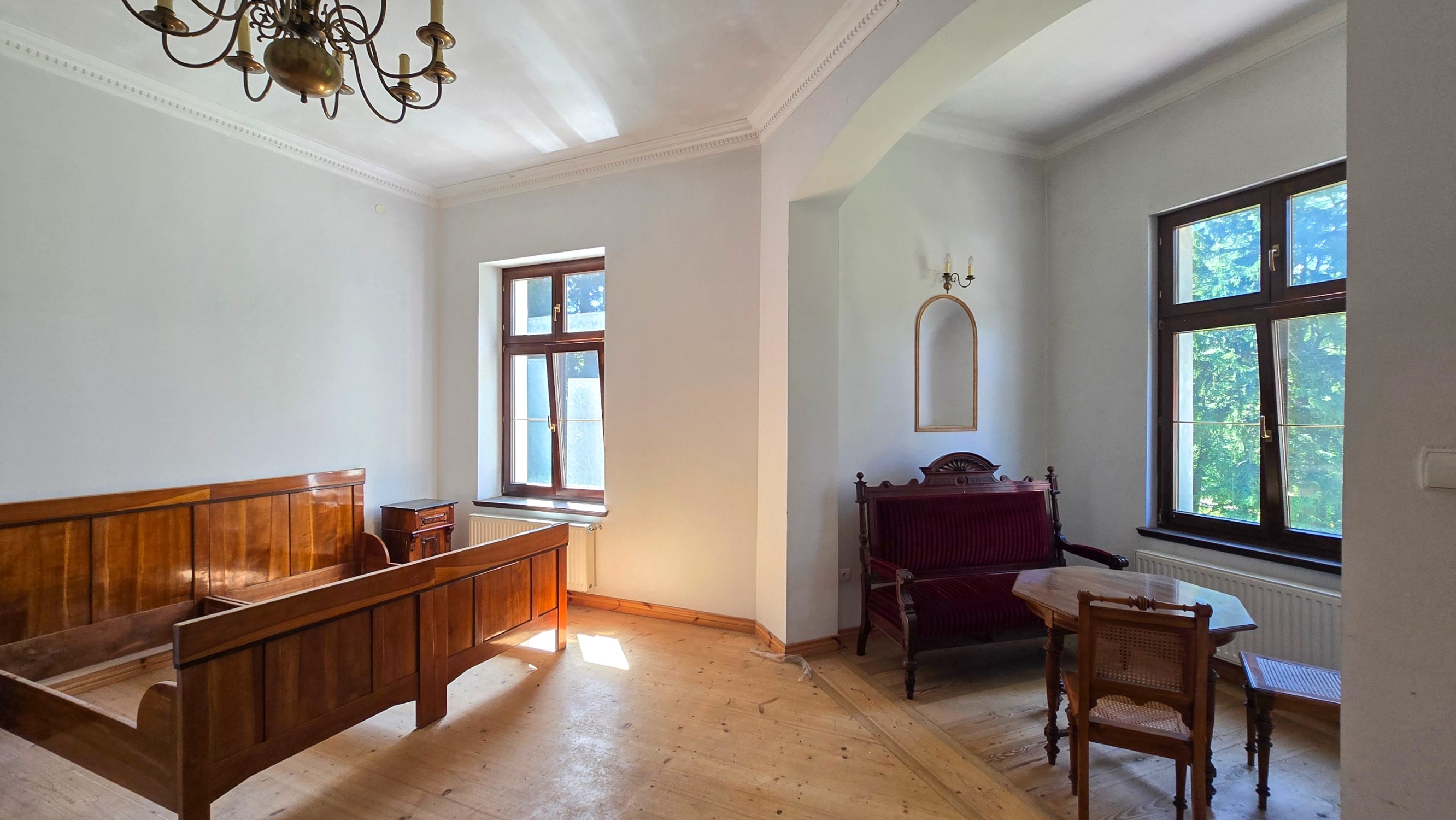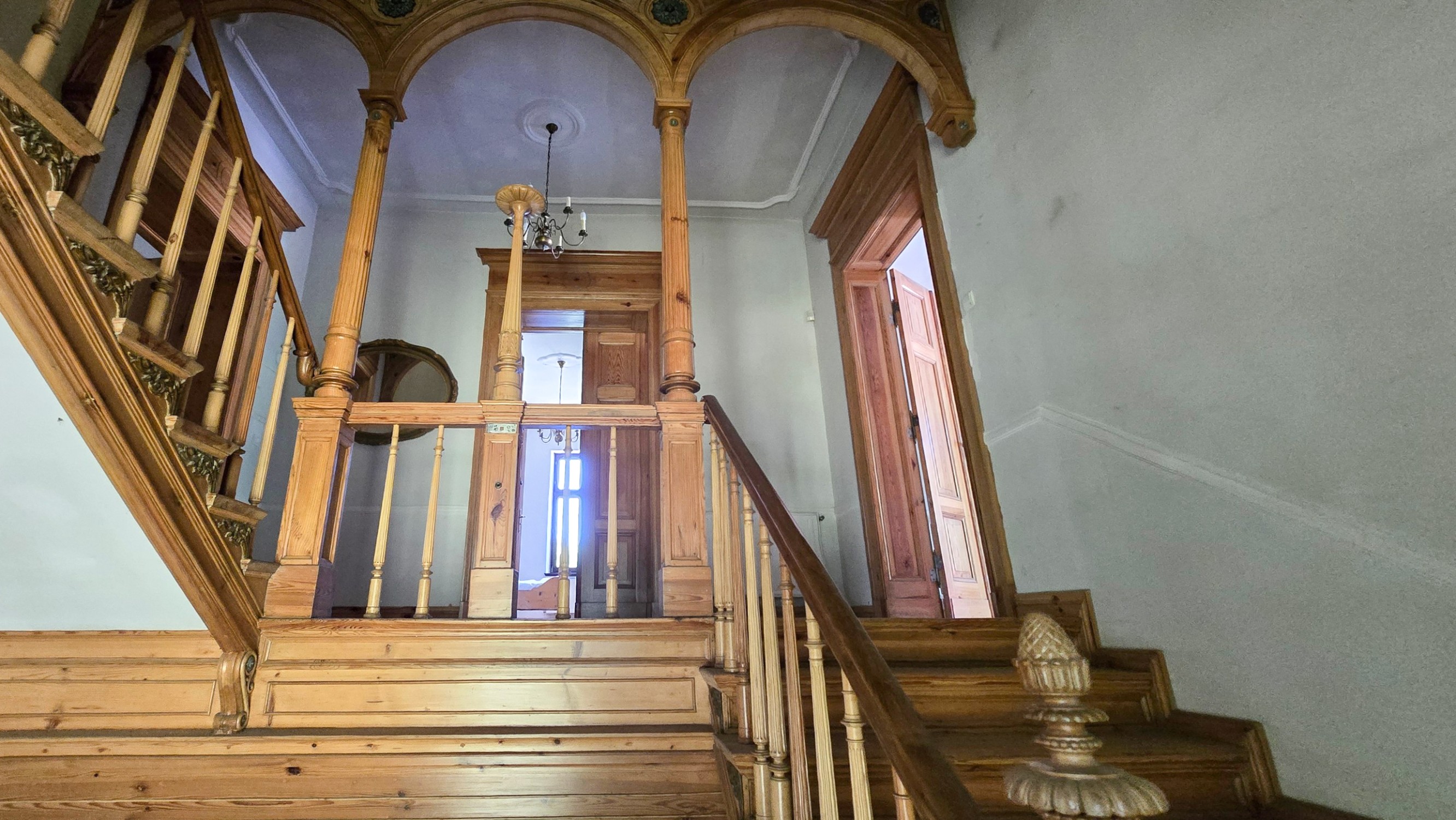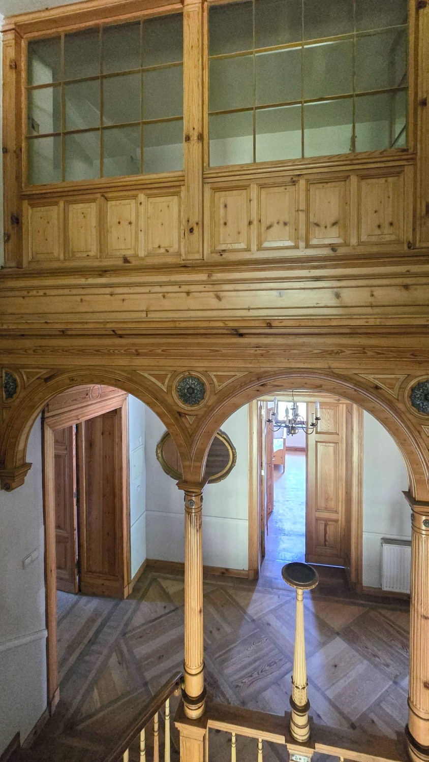 Uvnitř zaujmou rekonstruované štuky, řezané balustrády a původní dřevěné podlahy.