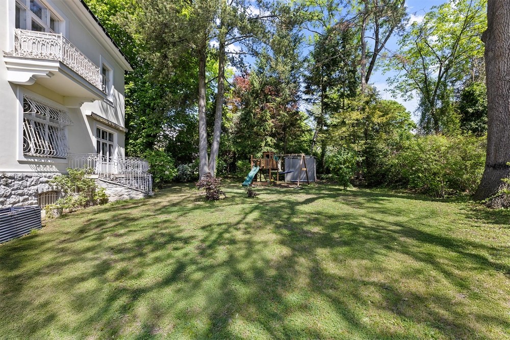 Zahrada v parkovém stylu s dospělými stromy nabízí klidné místo k odpočinku. Prostornost pozemku je ve Vídni vzácná. Nemovitost zahrnuje také plně podsklepené prostory a garáž pro dvě vozidla.