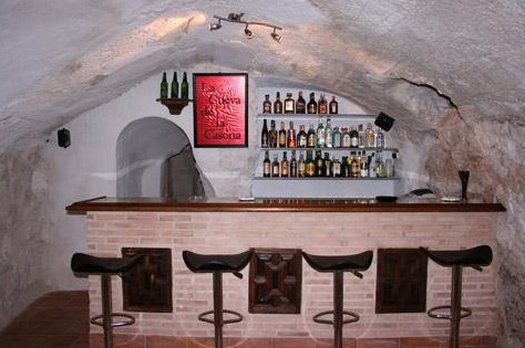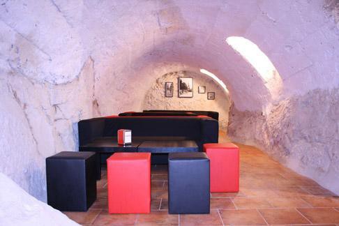 Podzemní část s místnostmi vytesanými do skály, v jeskynním stylu, s přístupem z obytné a jídelní části, druhým vstupem z centrální vstupní haly a třetím vstupem přes hospodářskou část paláce.