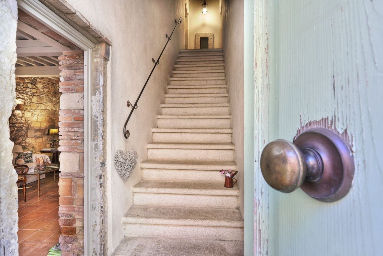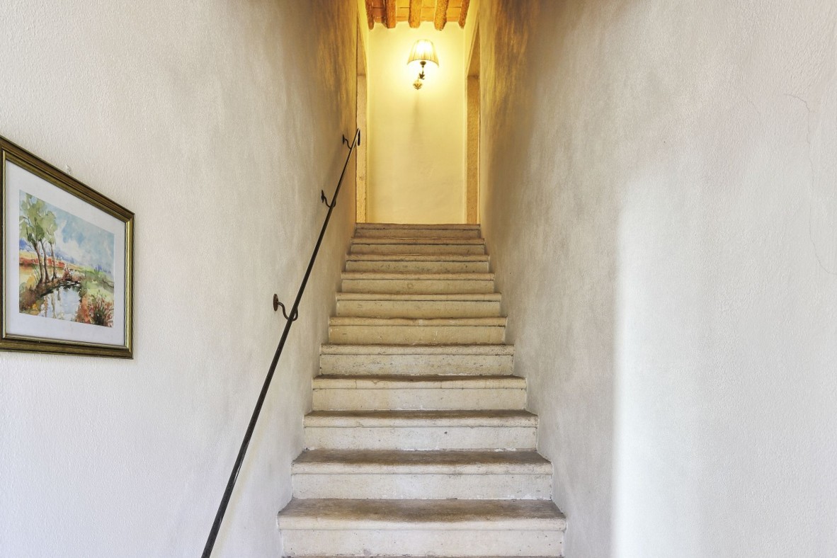 Staré kamenné schody vedou do patra, které nabízí prostorné a světlé místnosti: