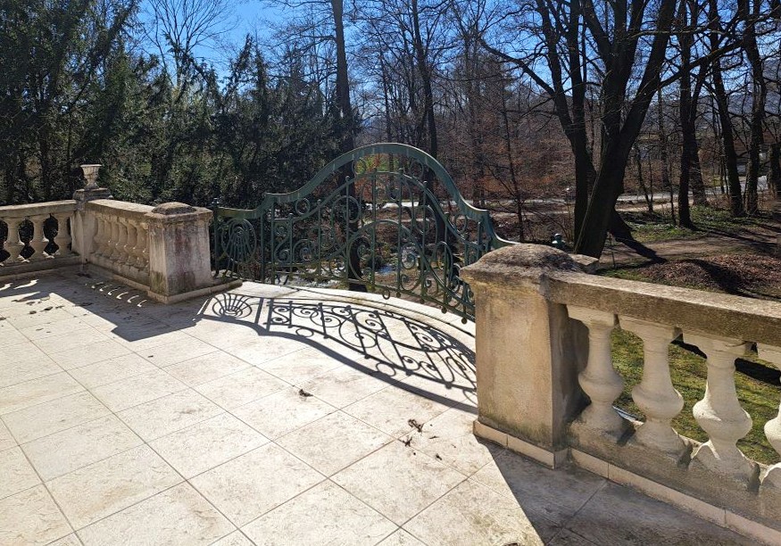 Monumentální vstupní brána z roku 1870 označuje přístup do parku. Pozemek je částečně ohraničen kamennou zdí vysokou 1,10 m a částečně poškozeným pletivem na kamenném podstavci.