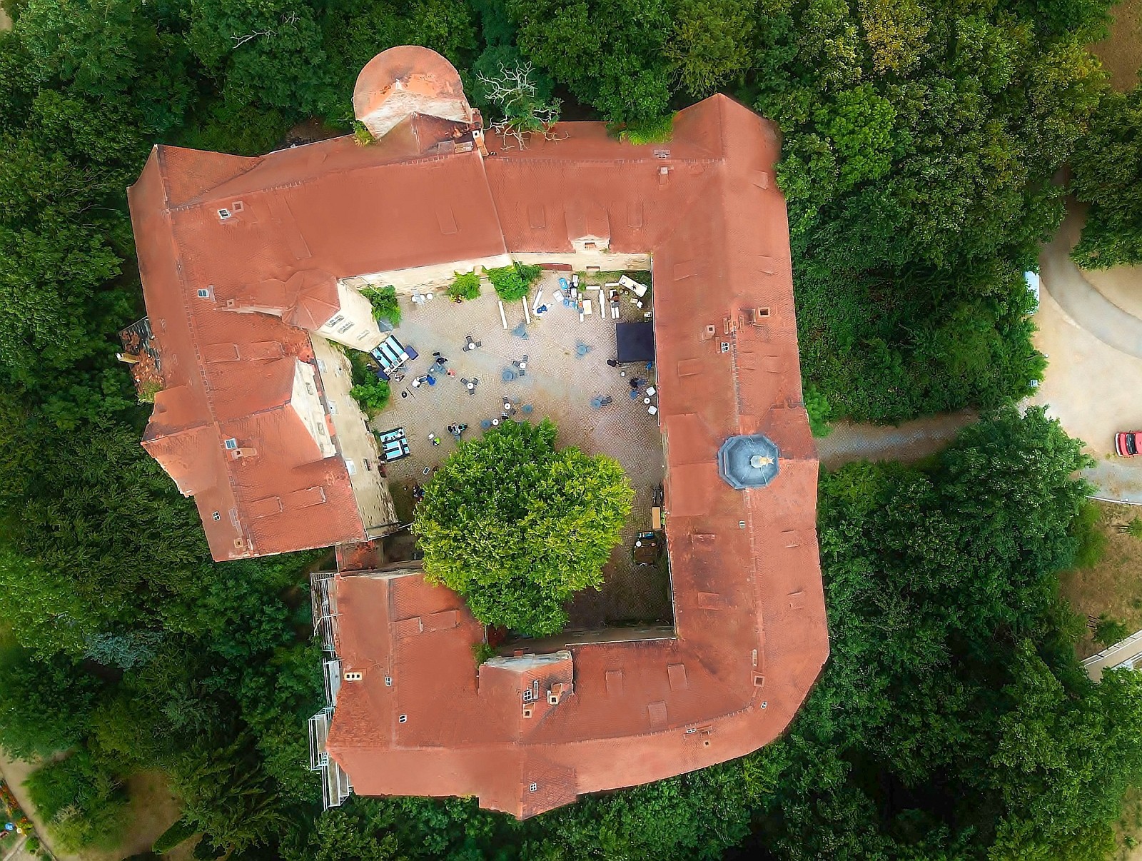 Velké schodiště Plesový sál Věž Vysoké stropy Štuková výzdoba Nádvoří